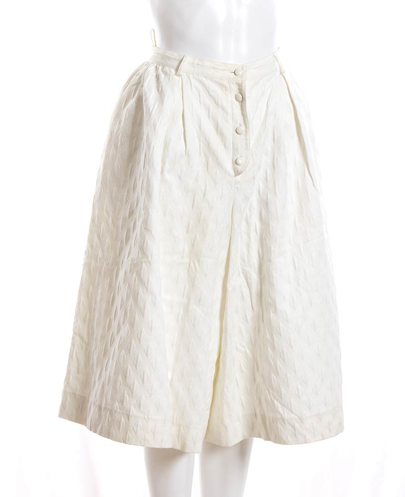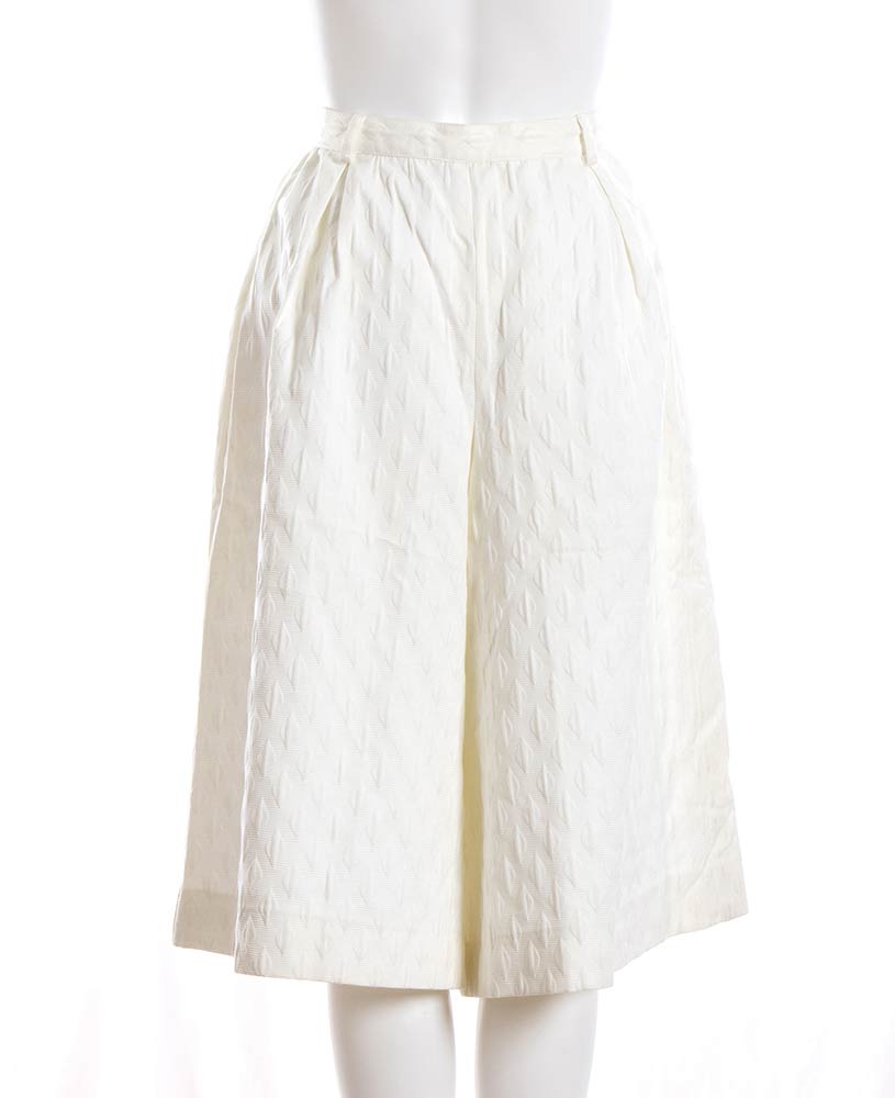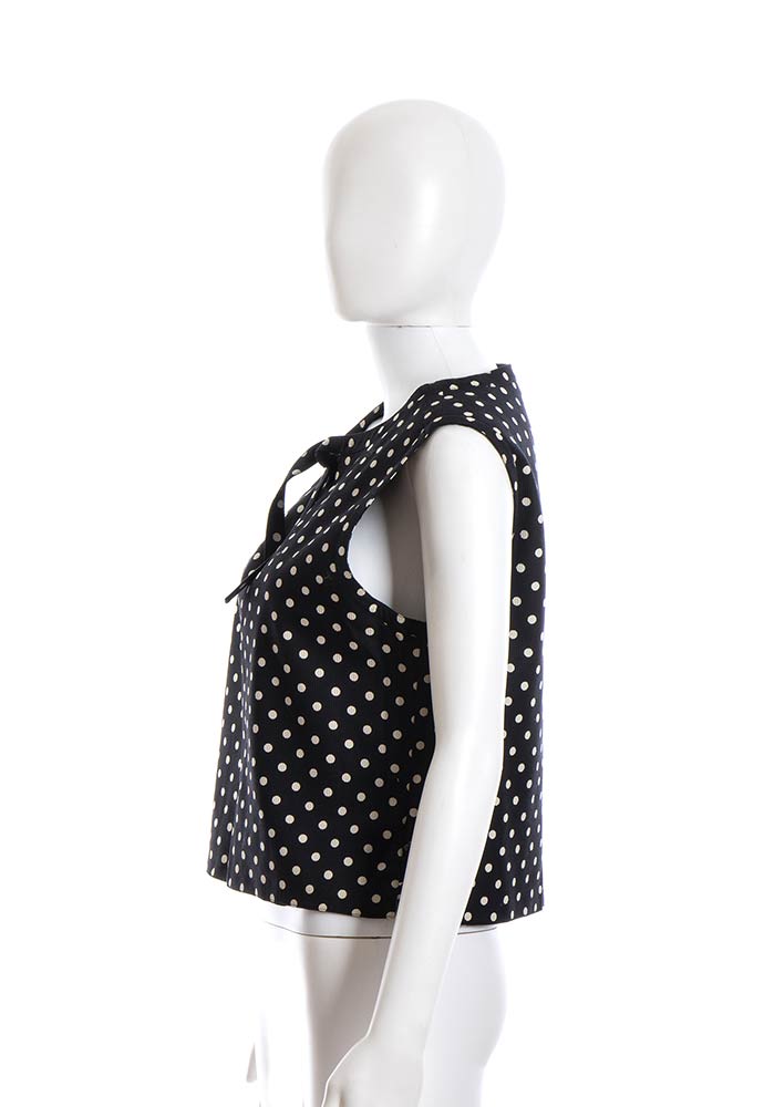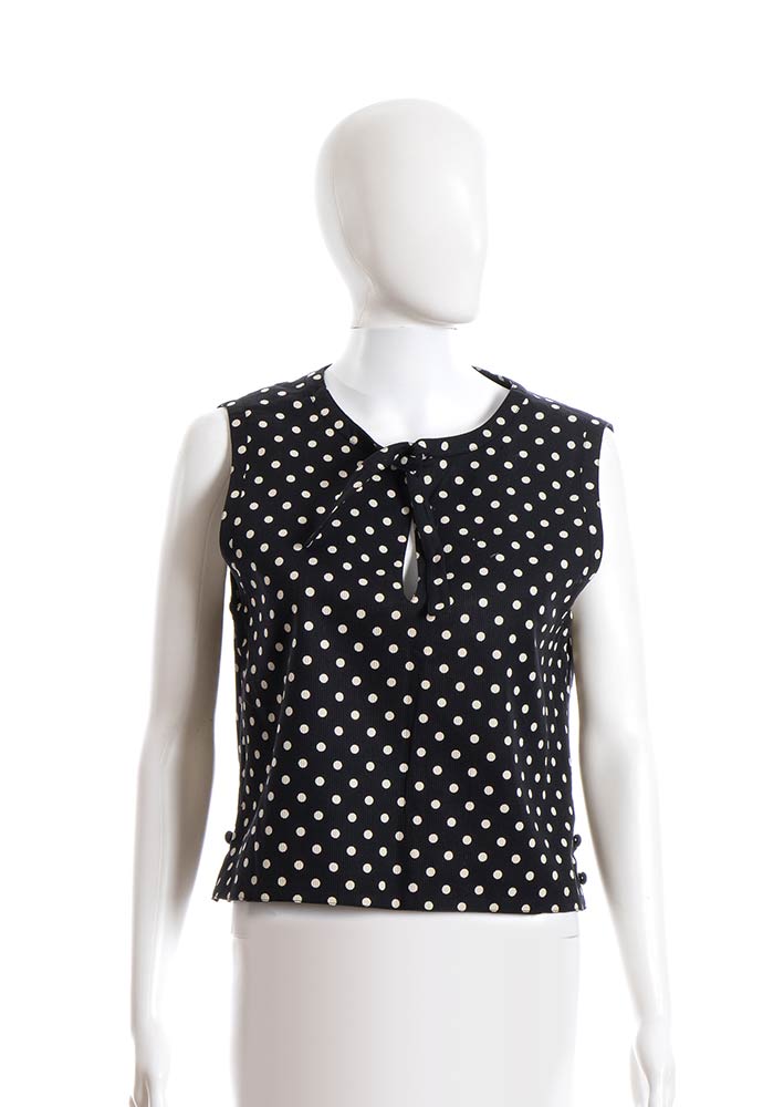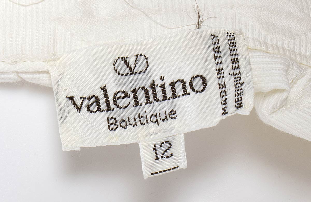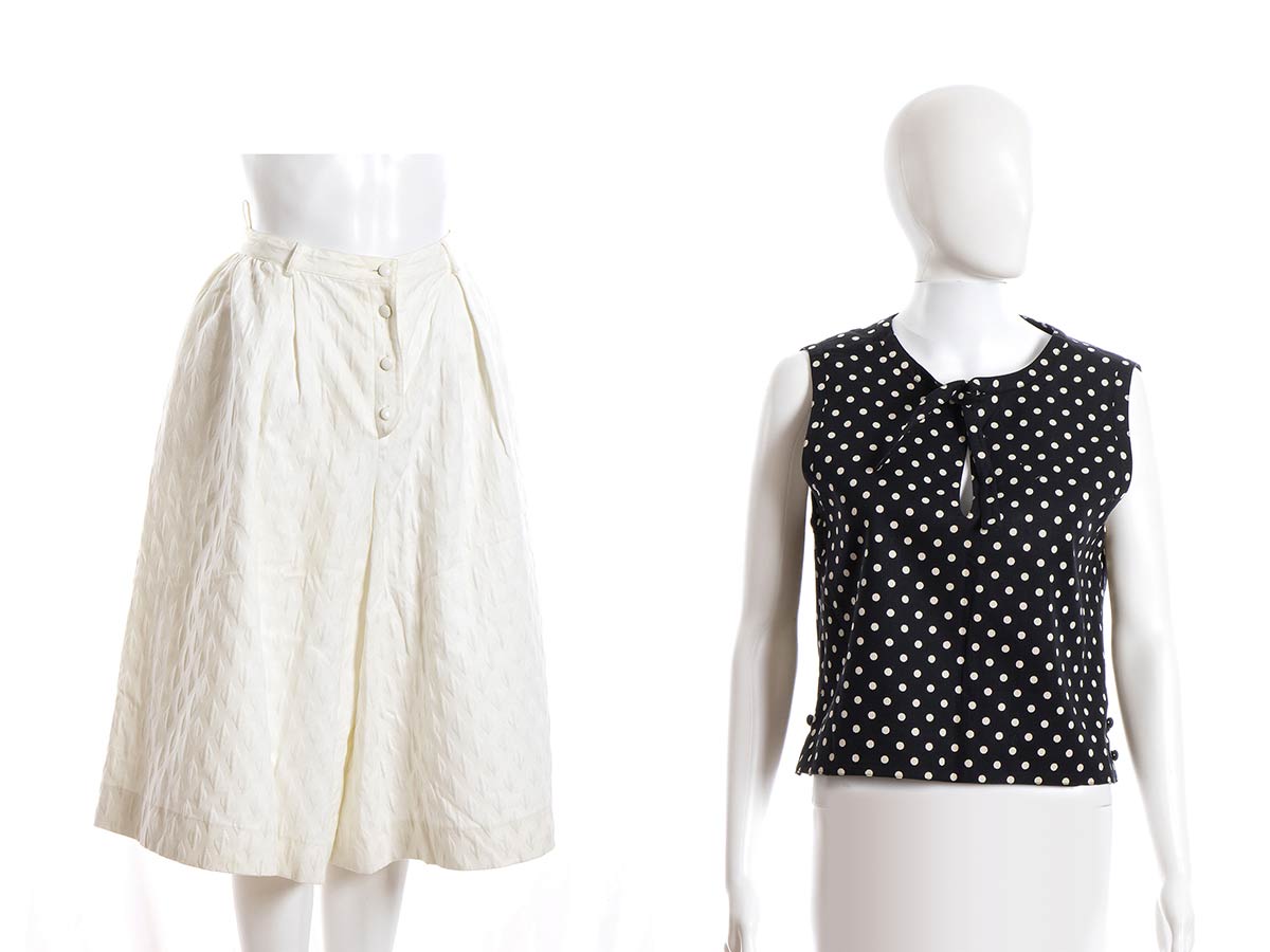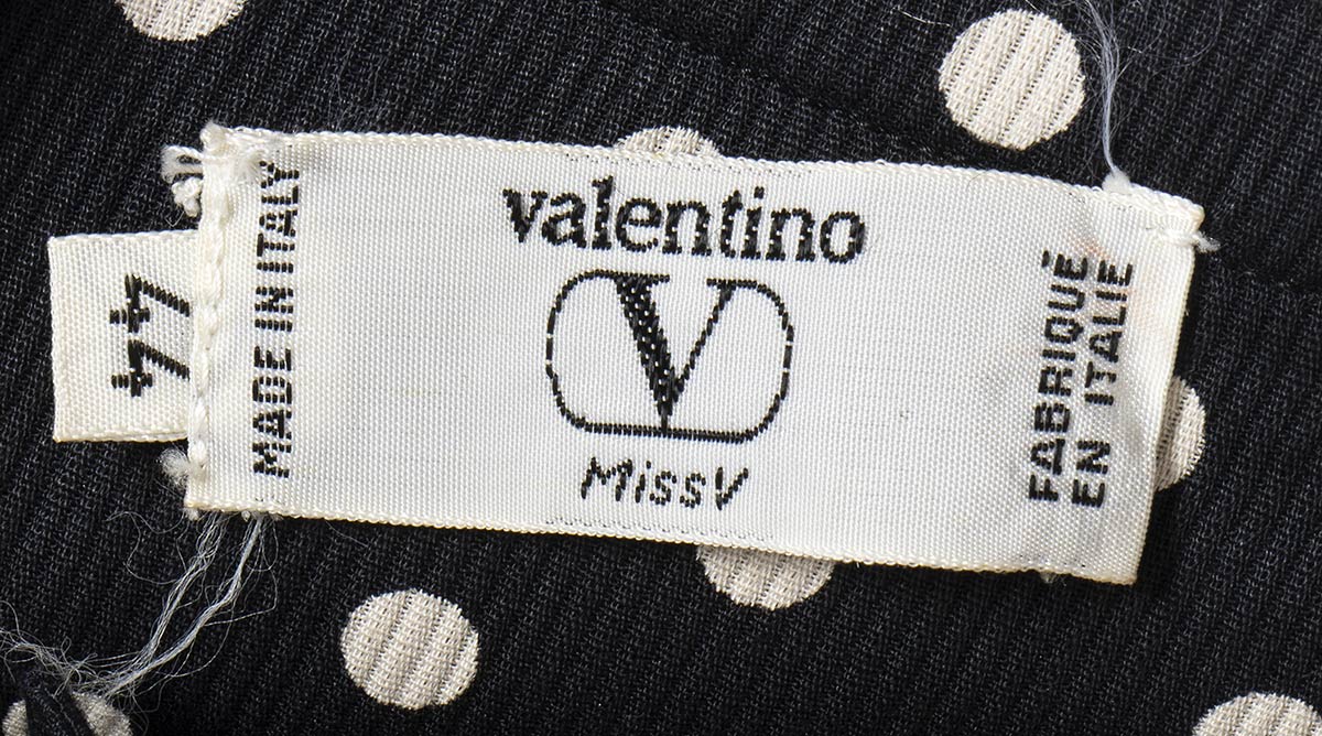 ValentinoLotto di 2 articoli Valentino anni 90: gonna pantalone Valentino Boutique in cotone operato bianco, top Miss V in cotone blu scuro a pois bianchi, grado di condizione generale B