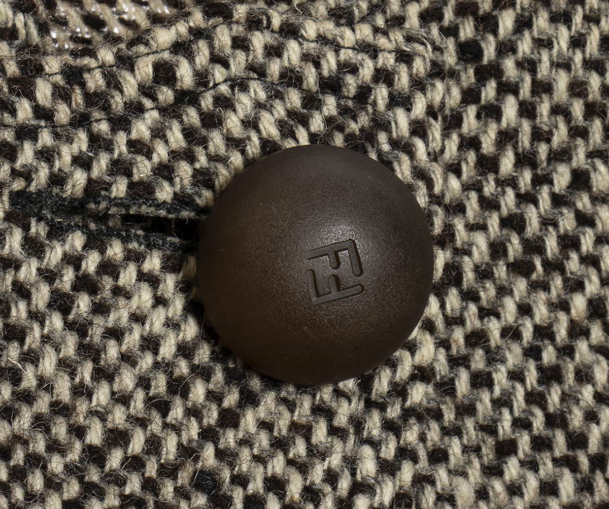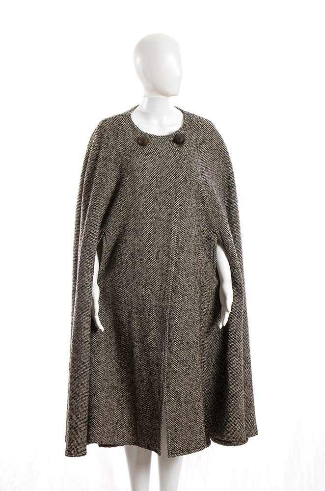 Fendicappa Cappa Fendi anni 80 in lana grigia, bottoni logati, grado di condizione generale B