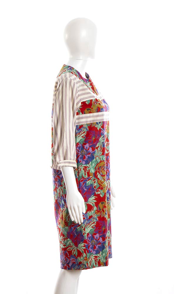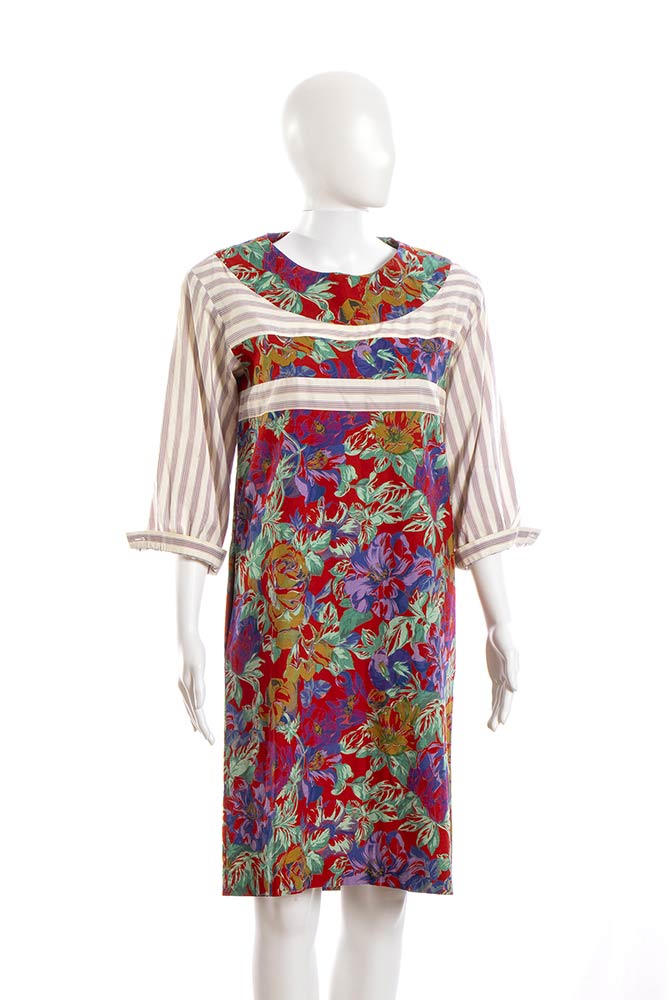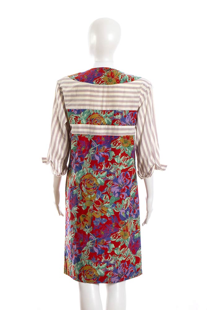 Giorgio Armaniabito Abito Giorgio Armani anni 80 in lino/cotone pattern a righe e floreale, grado di condizione generale B