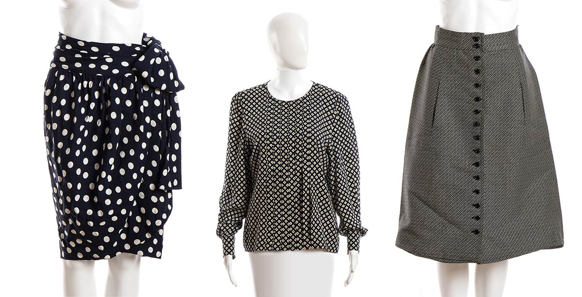 lotto di tre articoli Lotto di 3 articoli anni 70/90: blusa Valentino Studio, gonna in viscosa Saint Laurent e gonna in lana Givenchy Nouvelle Boutique, grado di condizione generale B