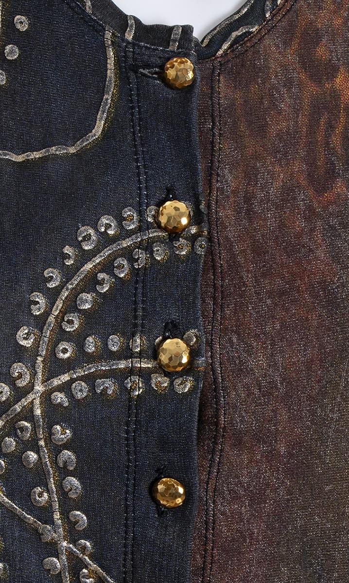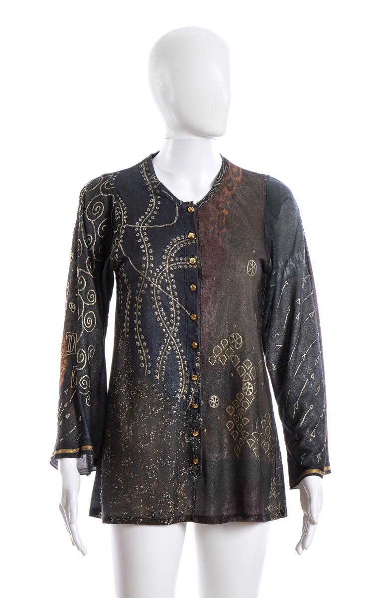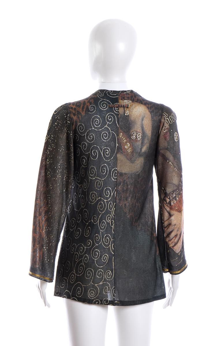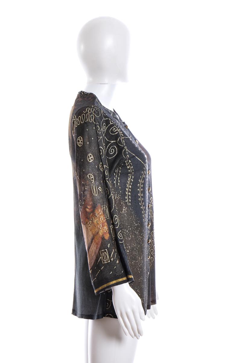 Jean Paul Gaultiermaglia Maglia Jean Paul Gaultier Maille primavera estate 1989, viscosa, bottoni in metallo dorato, stampa tema Klimt, grado di condizione generale B
