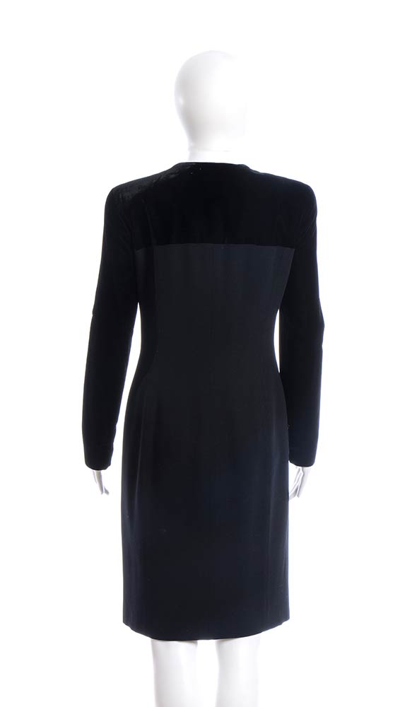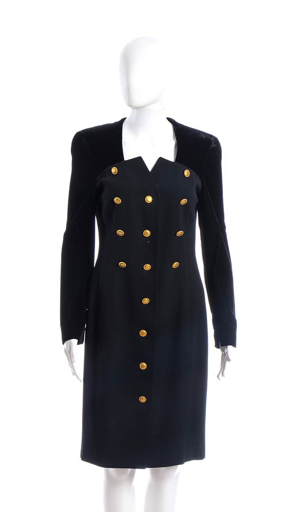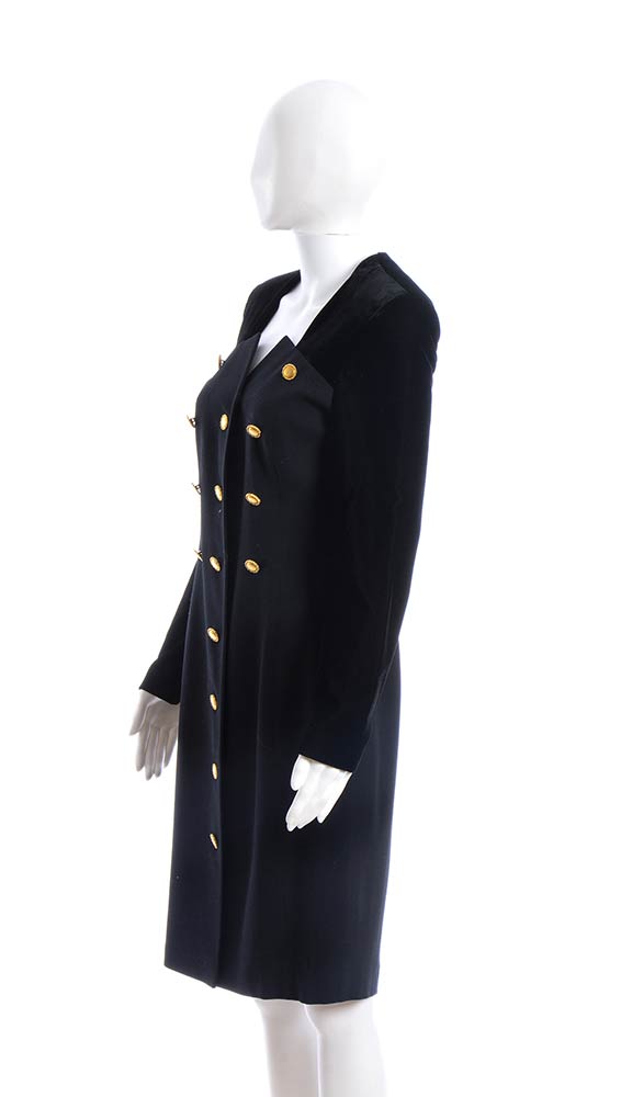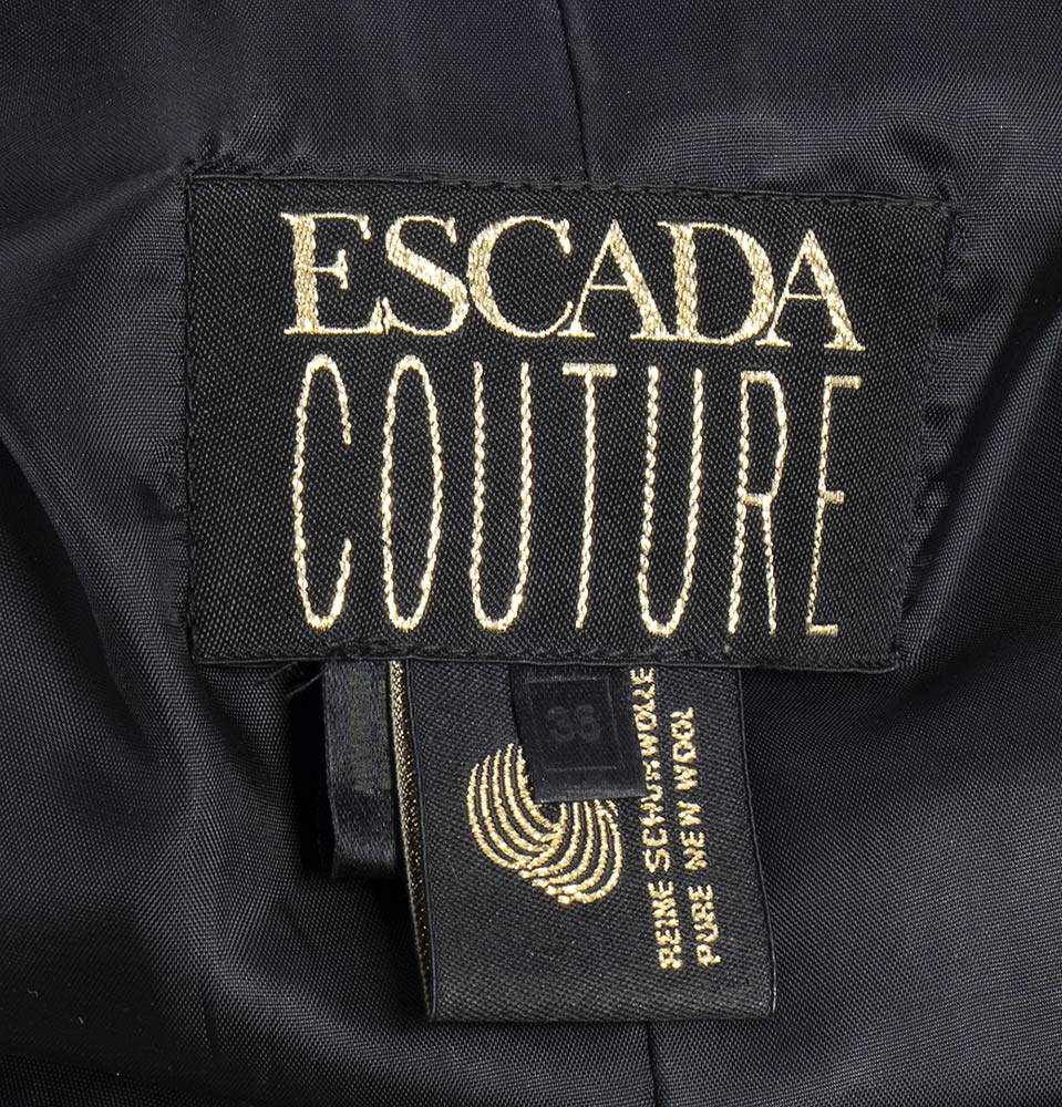 Escada Coutureabito Abito Escada Couture anni 90 in lana nera, inserti in velluto, bottoni dorati, grado di condizione generale B