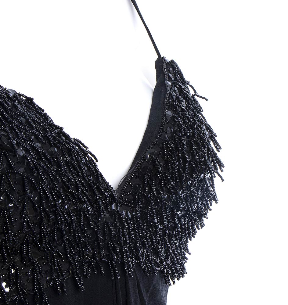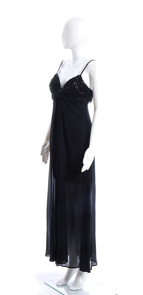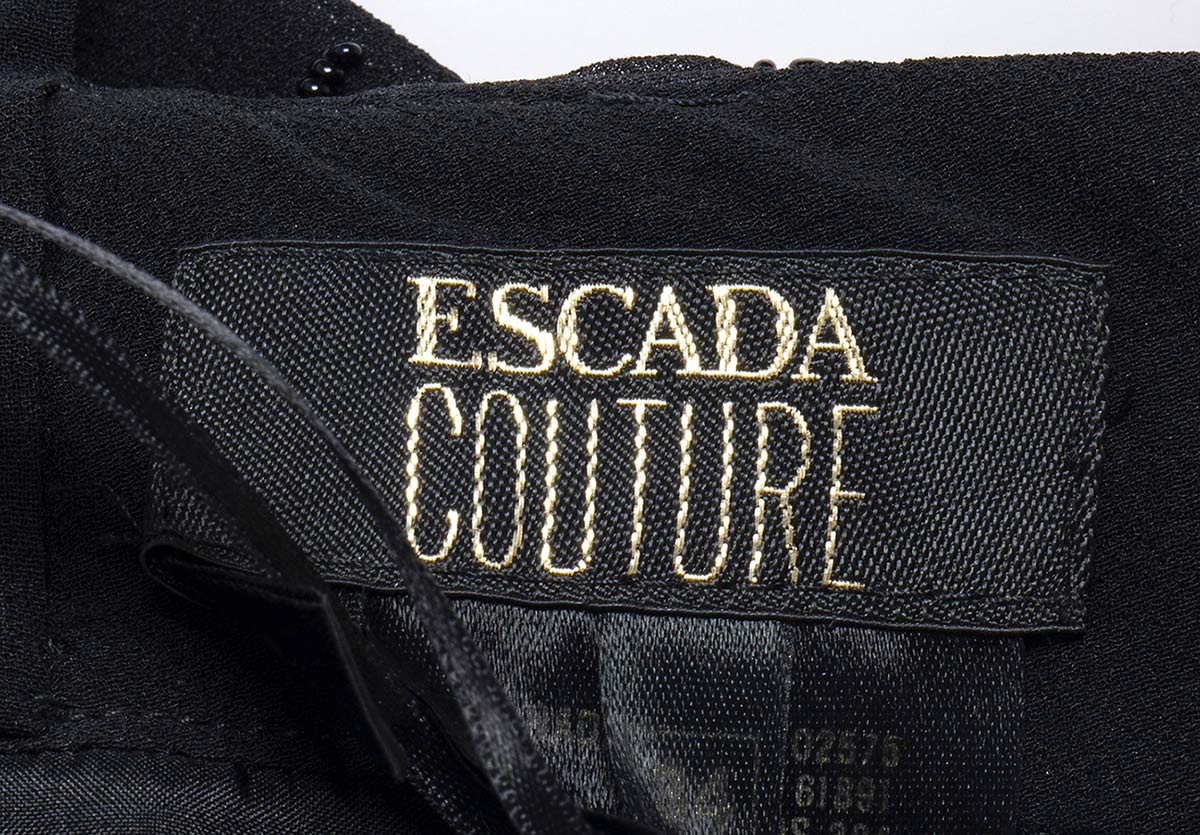 Escada Coutureabito Abito da sera Escada Couture anni 90 in seta nera e chiffon, corpino ricamato con perline e paillettes, grado di condizione generale B