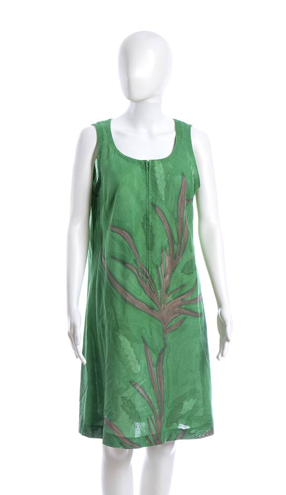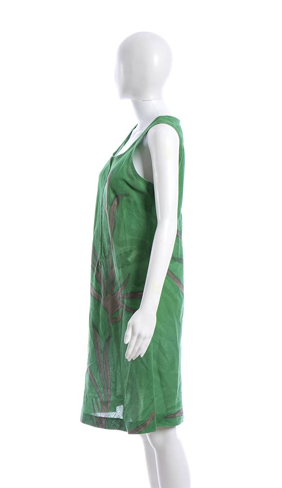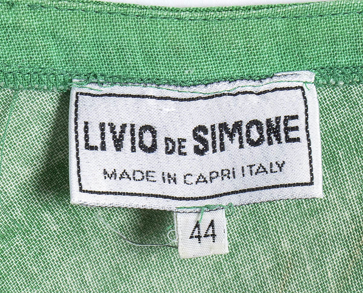 Livio De Simoneabito Abito prendisole fine anni 80/inizio anni 90 Livio De Simone in cotone/lino verde chiaro, grado di condizione generale B