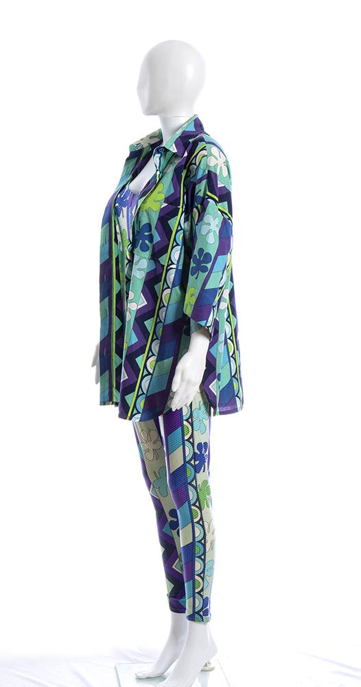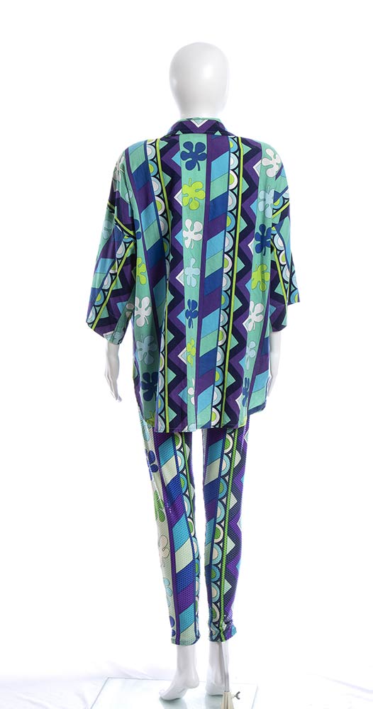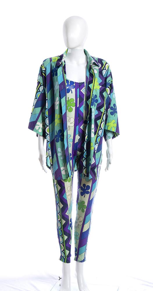 Diana D'Estecompleto Completo Diana D'Este inizio anni 90: tuta in tessuto sintetico iridescente, camicia in cotone, grado di condizione generale B/C (segni di utilizzo)