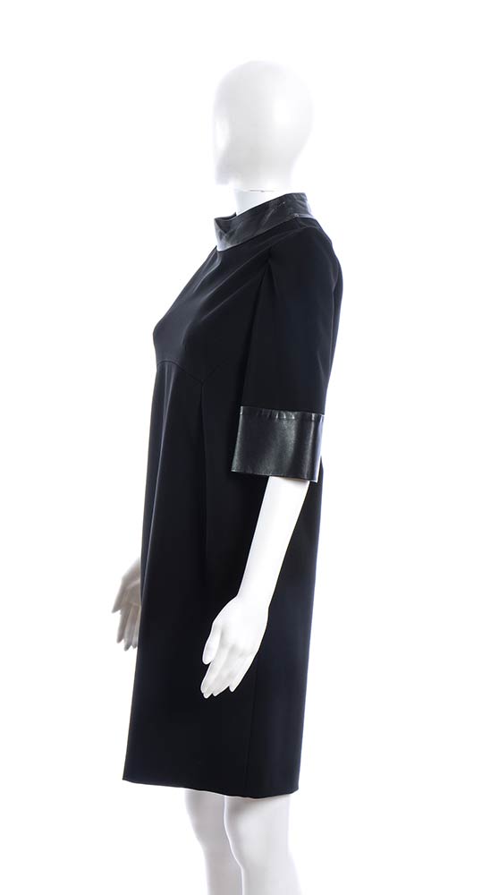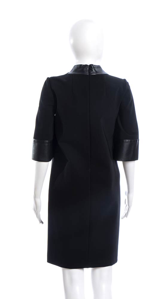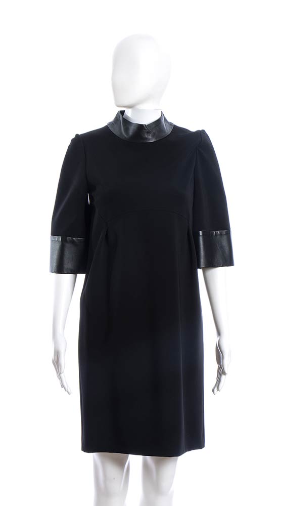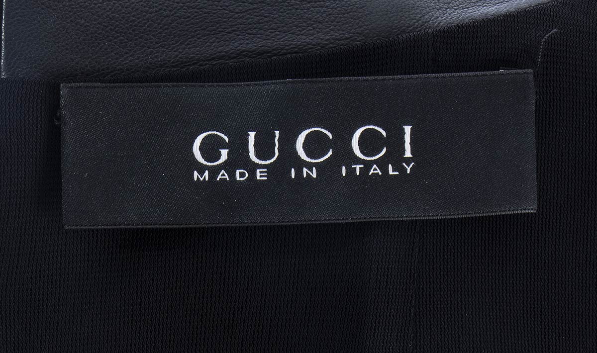 GucciabitoAbito gucci anni 2010/2015 in tessuto misto lana/seta, profili in pelle nera, grado di condizione generale B