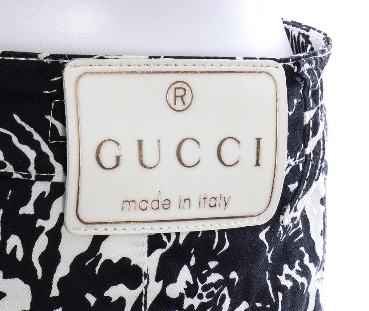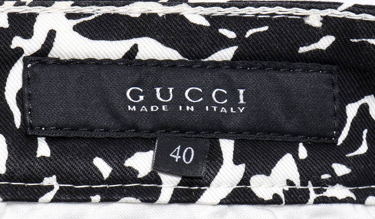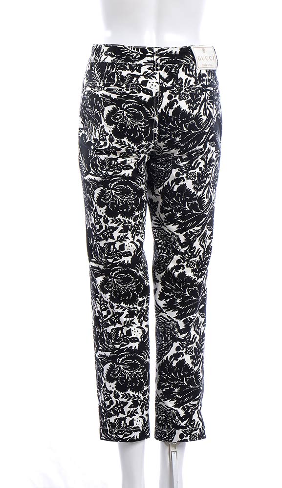 Guccijeans Pantalone modello jeans Gucci 2010 ca in cotone nero e bianco, pattern floreale, grado di condizione generale B