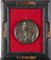 D'Annunzio, GabrielePlacca in bronzoPlacca in bronzo, di forma circolare, rilievo raffigurante il Vate Gabriele d'Annunzio in uniforme da Ardito, di fronte alla parete di edera del giardino del Vittoriale. Firmata in basso a destra G.FRANTAGNI - MILANO. Montata su supporto in legno rivestito di velluto, con bella cornice d'epocaIn perfette condizioni, diametro della placca cm.23, cornice misure circa 46x54