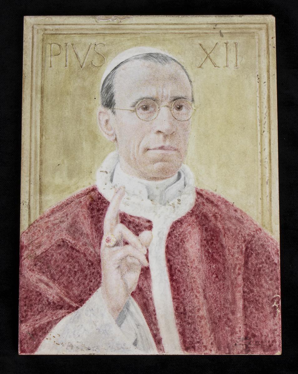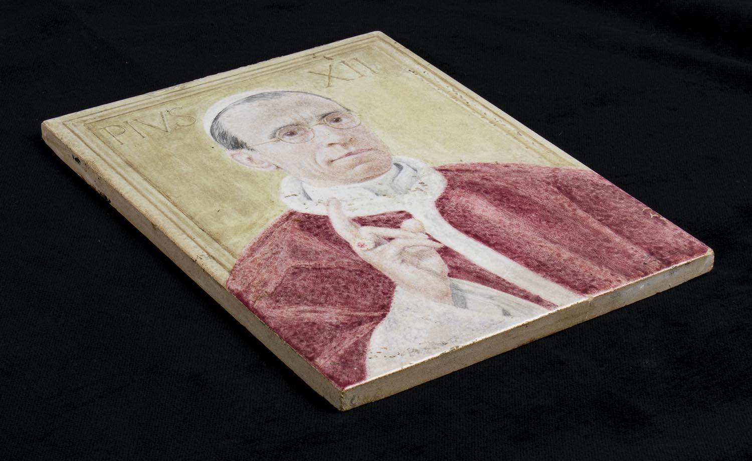 Cooperativa Ceramica ImolaPapa PIO XIIMaiolica in ceramica policroma dipinta a mano, raffigurante Papa PIO XII benedicente, con mozzetta e zuccotto. Timbrata al retro con il marchio COOPERATIVA CERAMICA IMOLA - MADE IN ITALY - 5291 con un'ape in volo. Prima metà '900Cm. 20x15. Lievi sbeccature al bordo, in buone condizioni generali