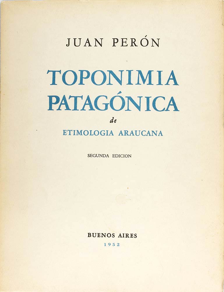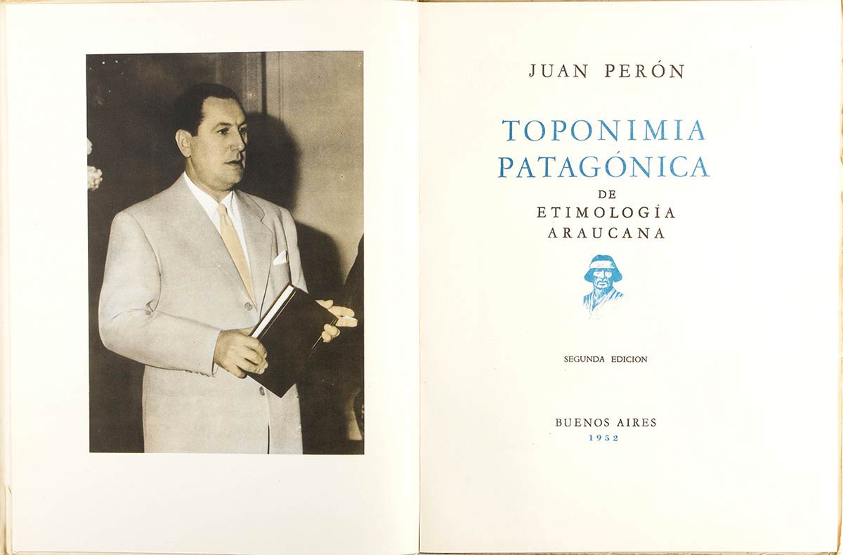 Peron, Evita (nata María Eva Duarte Los Toldos, 7 maggio 1919 - Buenos Aires, 26 luglio 1952)Documenti Toponimia Patagónica de Etimologia Araucanadi Juan Domingo PerónJulio Kaufman Editore. Edizione numerata del 1952 con illustrazioni a colori dell’acquarellista Eleodoro Marenco60 pagine.Copia numerata del dizionario di lingua araucana scritto da Juan Domingo Perón.Toponimia Patagónica, de Etimogía AraucanaDiccionario escrito por el Gral. Juan Domingo Perón.Edicion numerada de 1952, Imprenta de Julio Kaufman, con ilustraciones a color del acuarelista Eleodoro Marenco. 60 páginas.Es uno de los ejemplares de los de diversas Ediciones que el Gral tenía, como otros libros de su autoría, en Puerta de Hierro, y solía obsequiar a visitantes.Buone condizioni