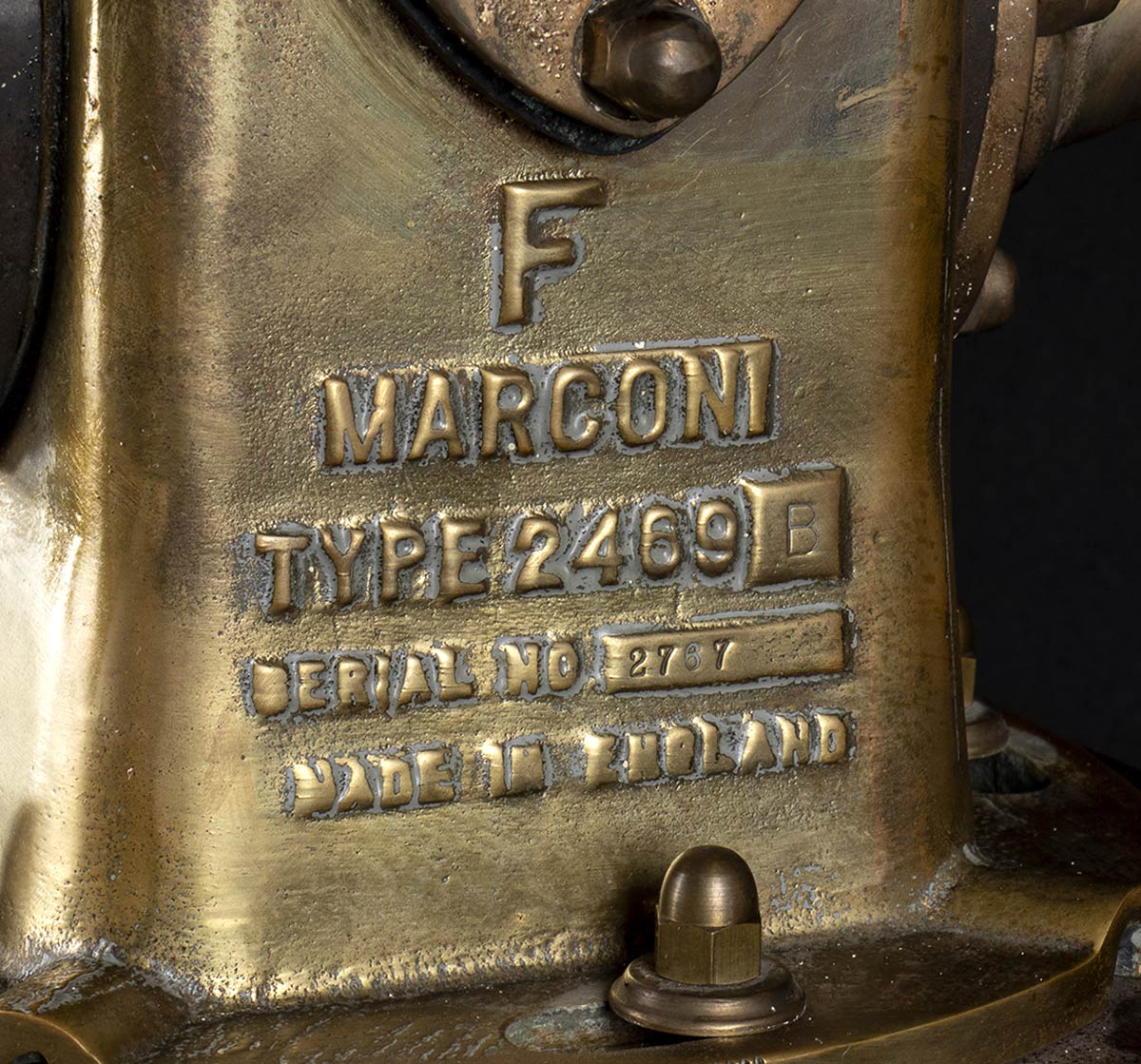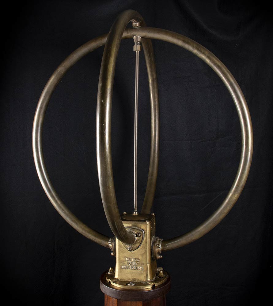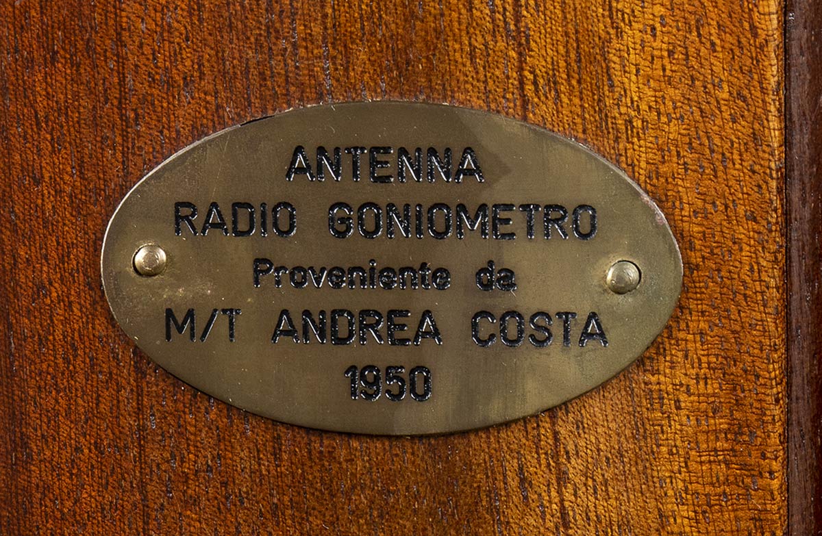 MarconiAntenna Radio GoniometroRarissima, museale antenna radio goniometro, modello "F" MARCONI - TYPE 2469 B - Serial. N.2767 - L'antenna navale di tipo a loop incrociato, realizzata con tubi in lega, un modello simile fu quella in uso sul panfilo Elettra riequipaggiato dallo stesso Marconi durante gli anni 1930. Proveniente da ultimo uso su Moto Nave da Trasporto Andrea Costa, seconda metà '900. Montata su bella base tronco conica a sezione ottagonale, in legno di mogano, imponente presenza Ottimo stato, misura circa cm.75 di diametro per loop, per una altezza di circa cm.90. La base misura cm.110