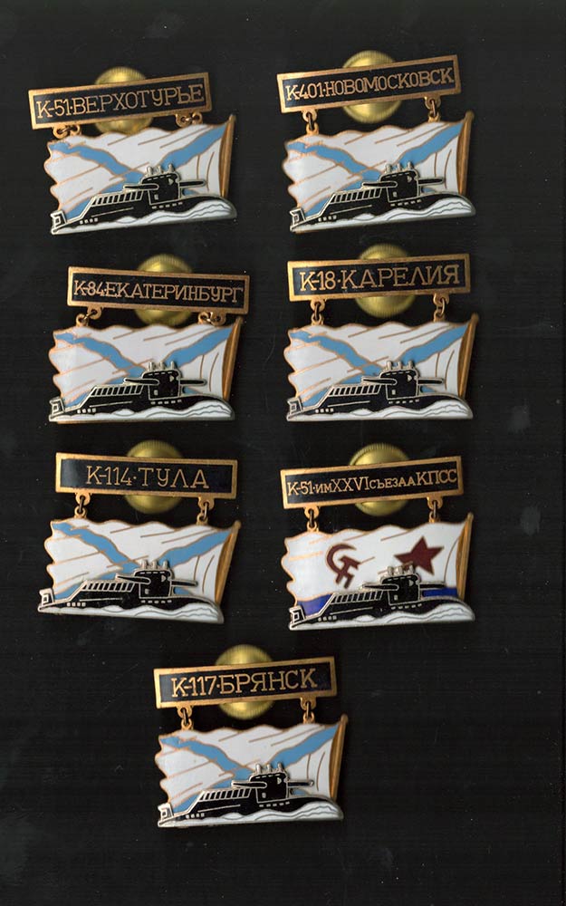 URSS - Lotto di 7 distintivi da sommergibilista in smalto