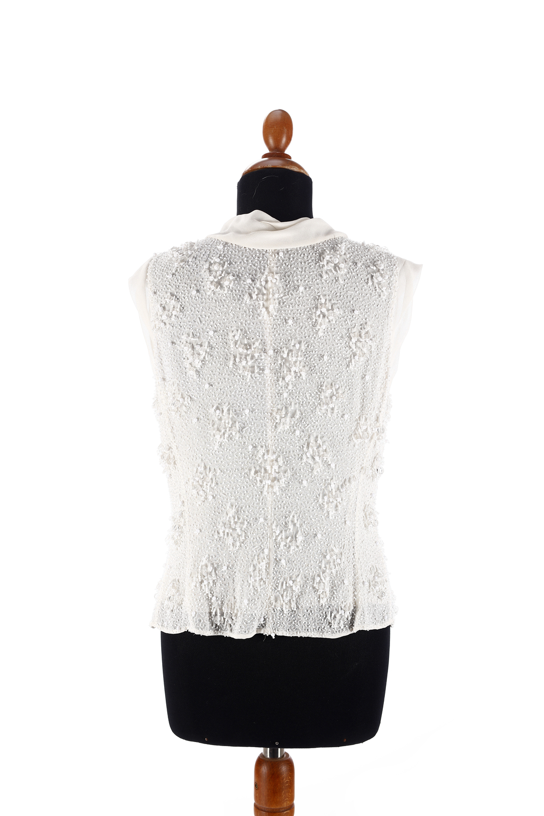 ARMANI EMPORIO - Gilet in seta con perline color bianco avorio.