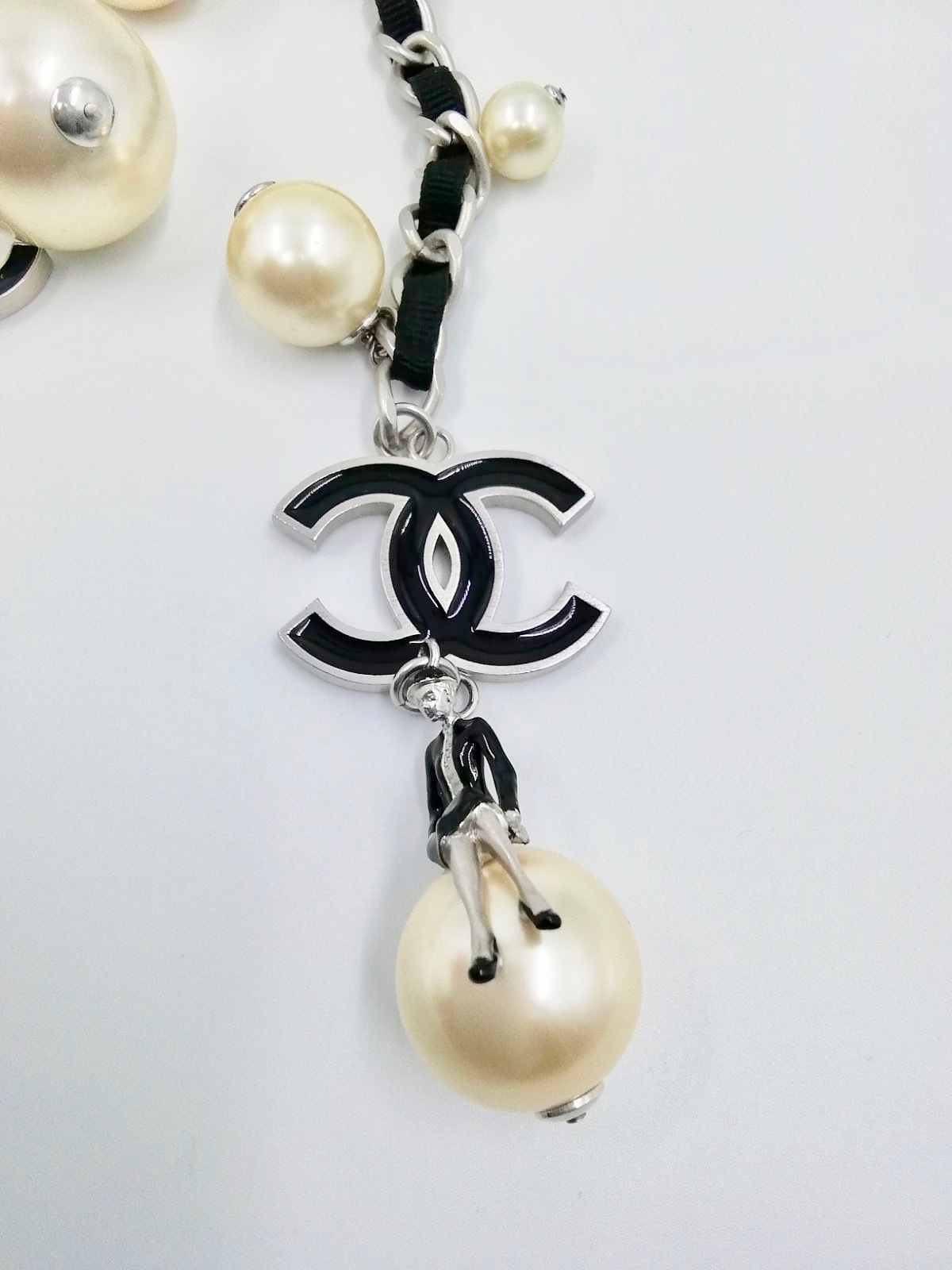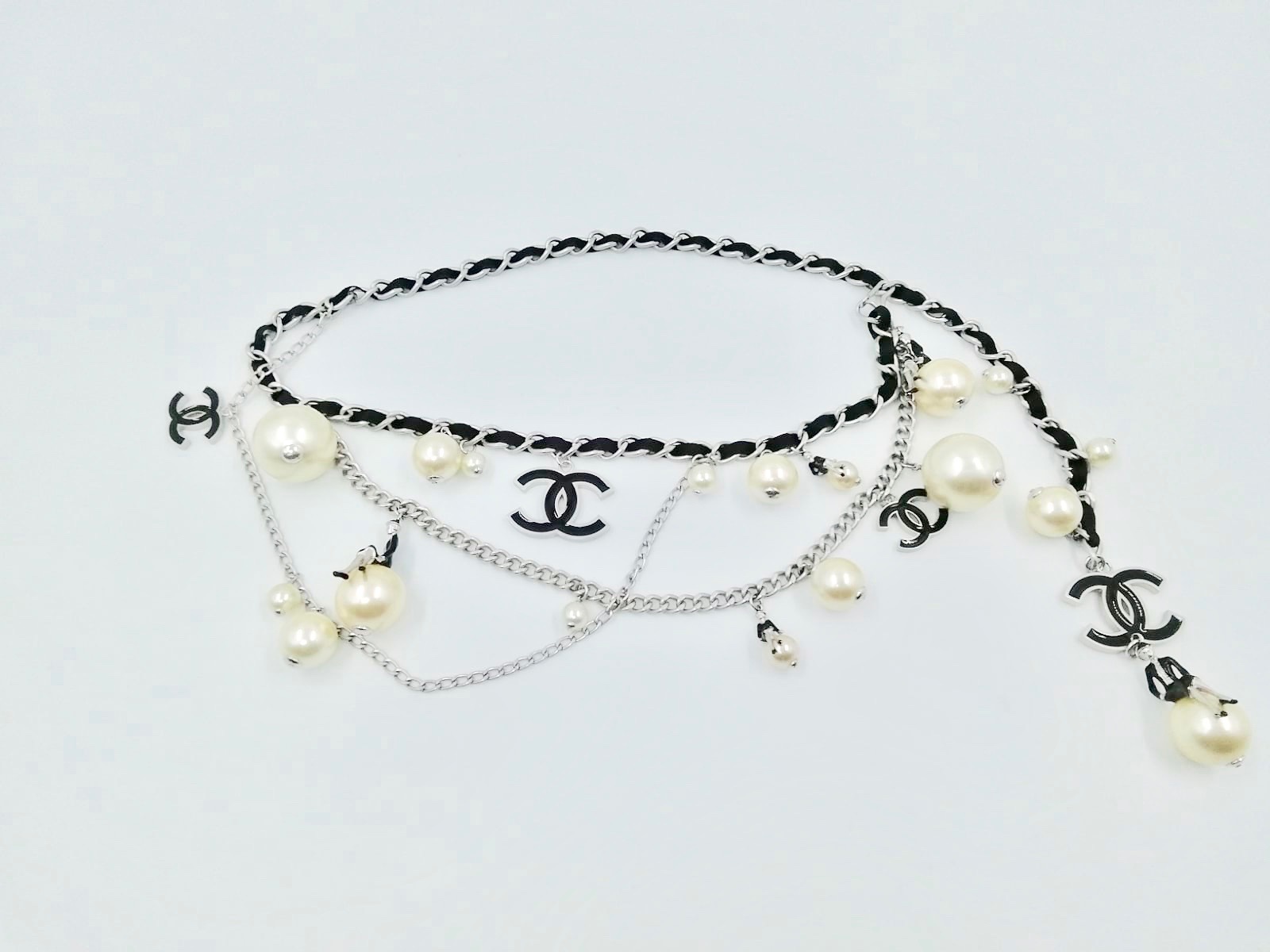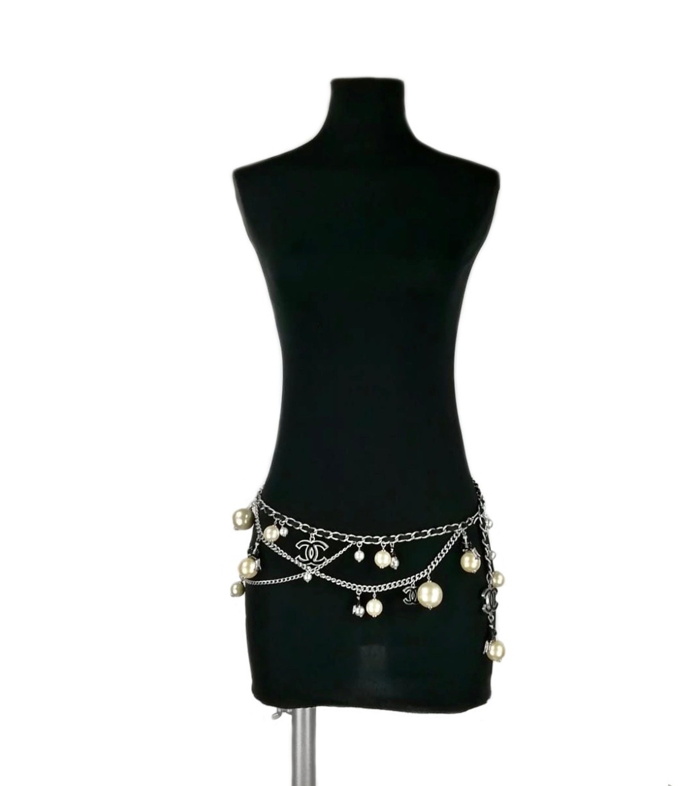 CHANEL Cintura "Coco on the moon". 2004. Catene, perle, perle con silhouette. Cm 84,00. Cintura con catene, perle, perle con silhouette. Collezione Autunno/Inverno 2004. Lunghezza cm 84 + ciondolo cm 9. Condizioni eccellenti.