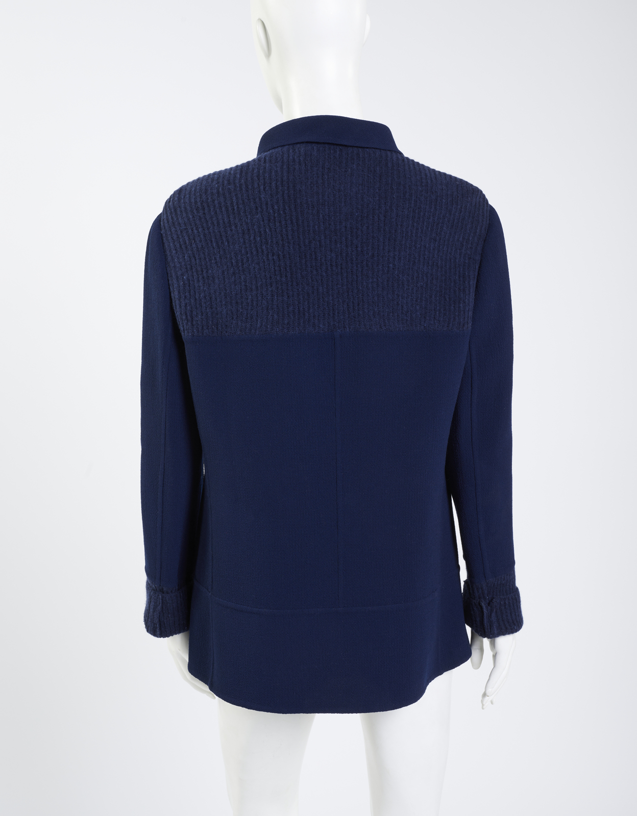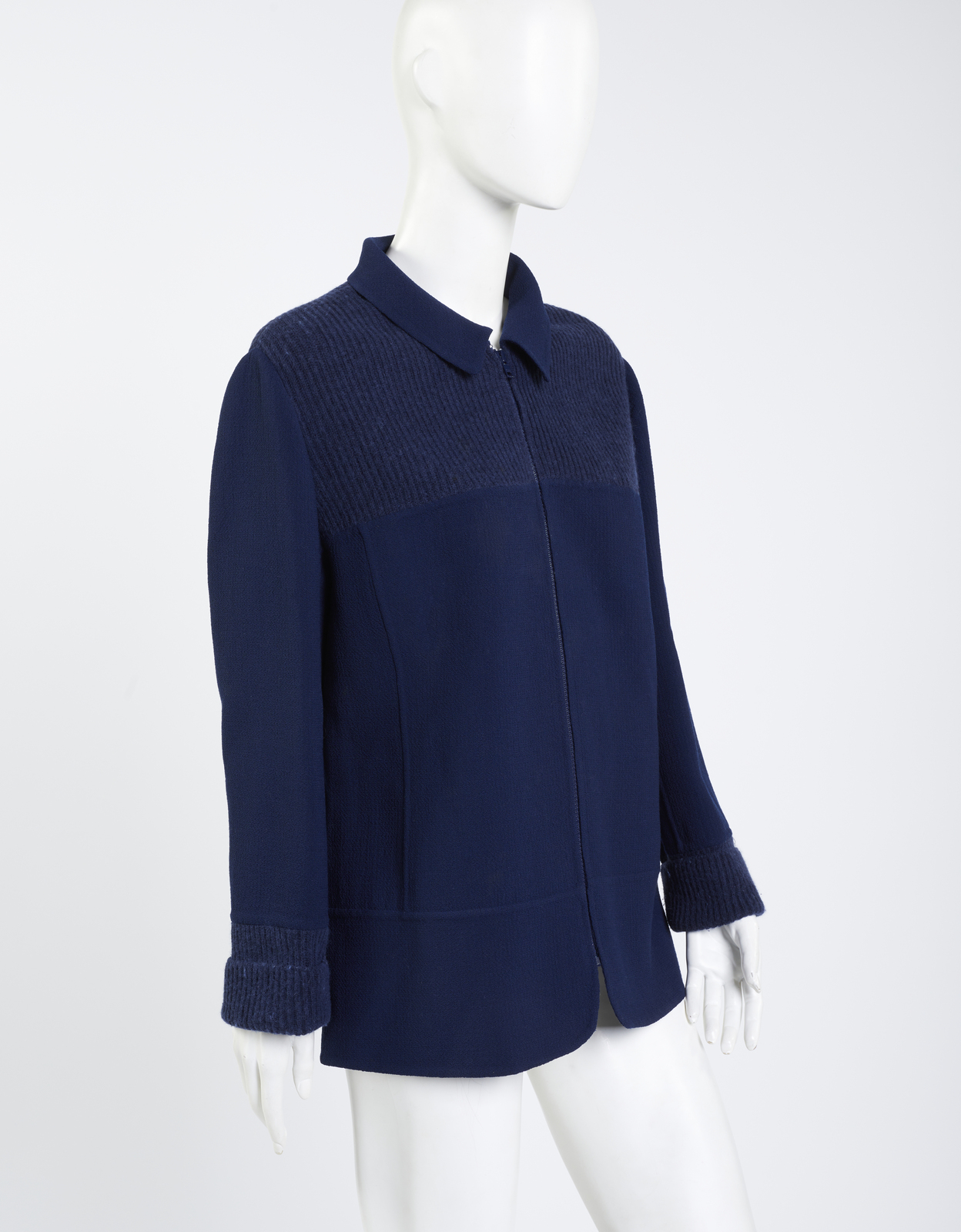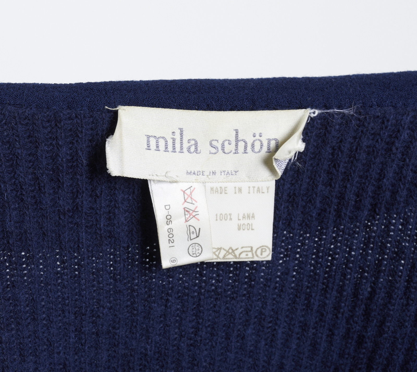SCHON MILA Cardigan con zip nei toni del blu. lana. . Etichetta presente. Spalla cm 42, lunghezza 68 cm, taglia It 42/ 44 circa.
