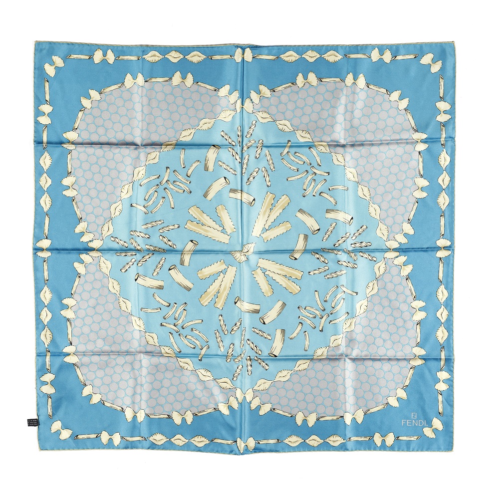 Lot 108 | FENDI - Foulard in seta fantasia "La Pasta" su fondo azzurro. .