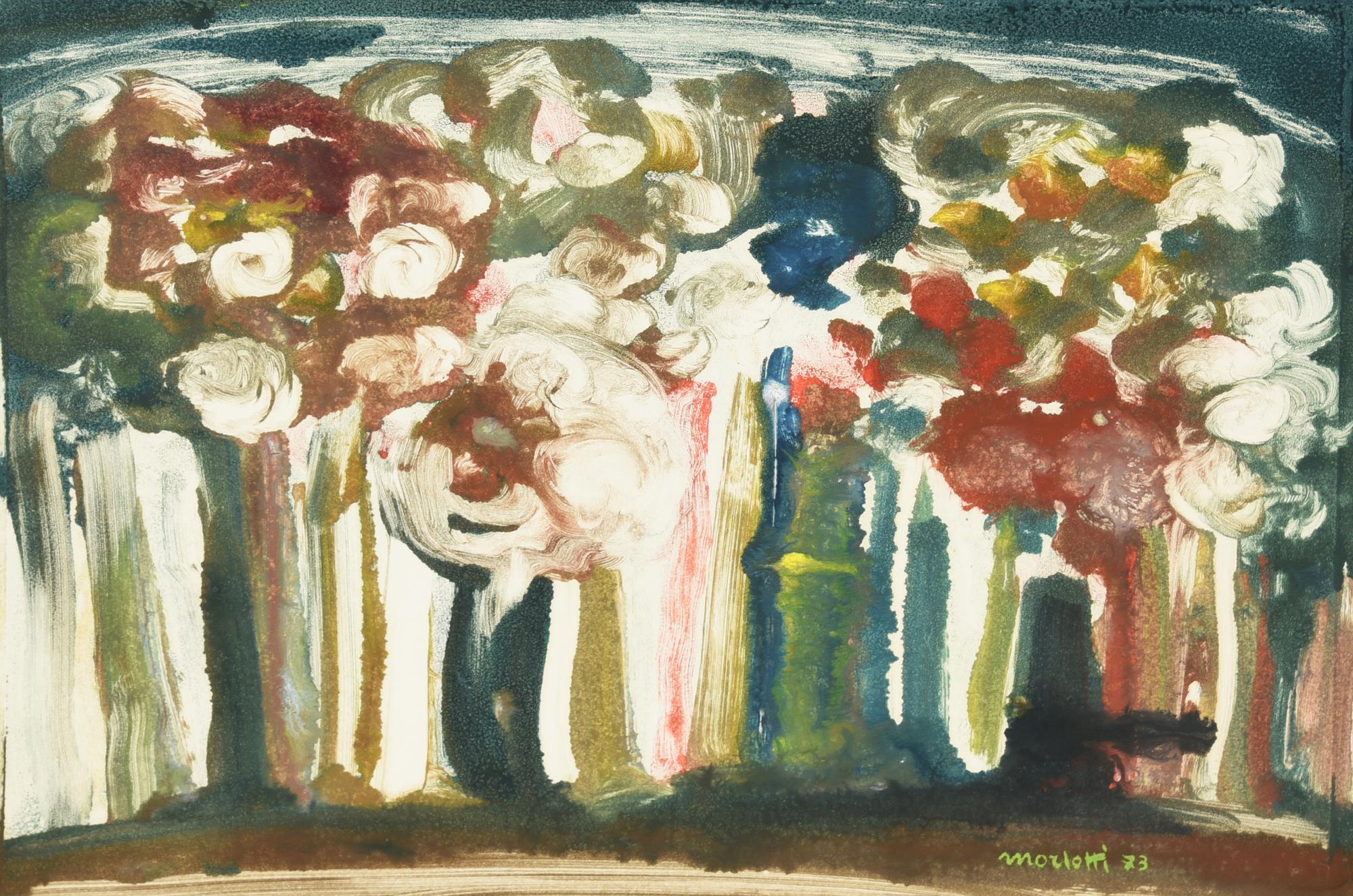 Lot 39 | Ennio Morlotti (1910 - 1992) ALBERI, 1973 tempera su carta, cm 31,5x46 firma...