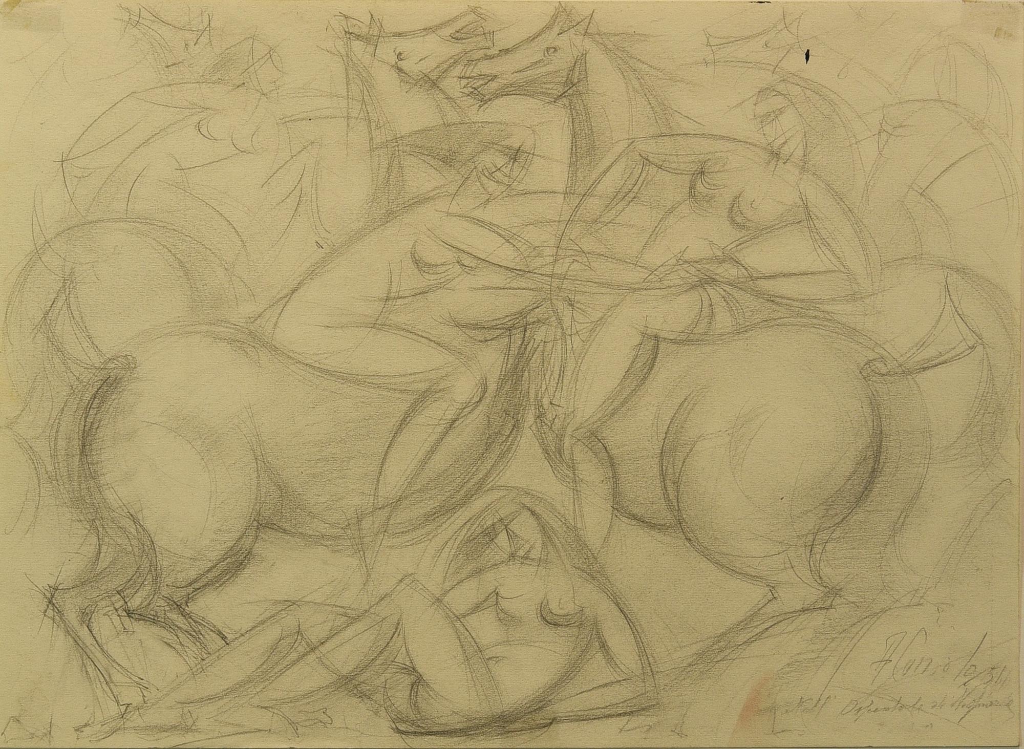Armando Cuniolo (1900 - 1955) LOTTA DI AMAZZONI, 1951 matita su carta, cm...