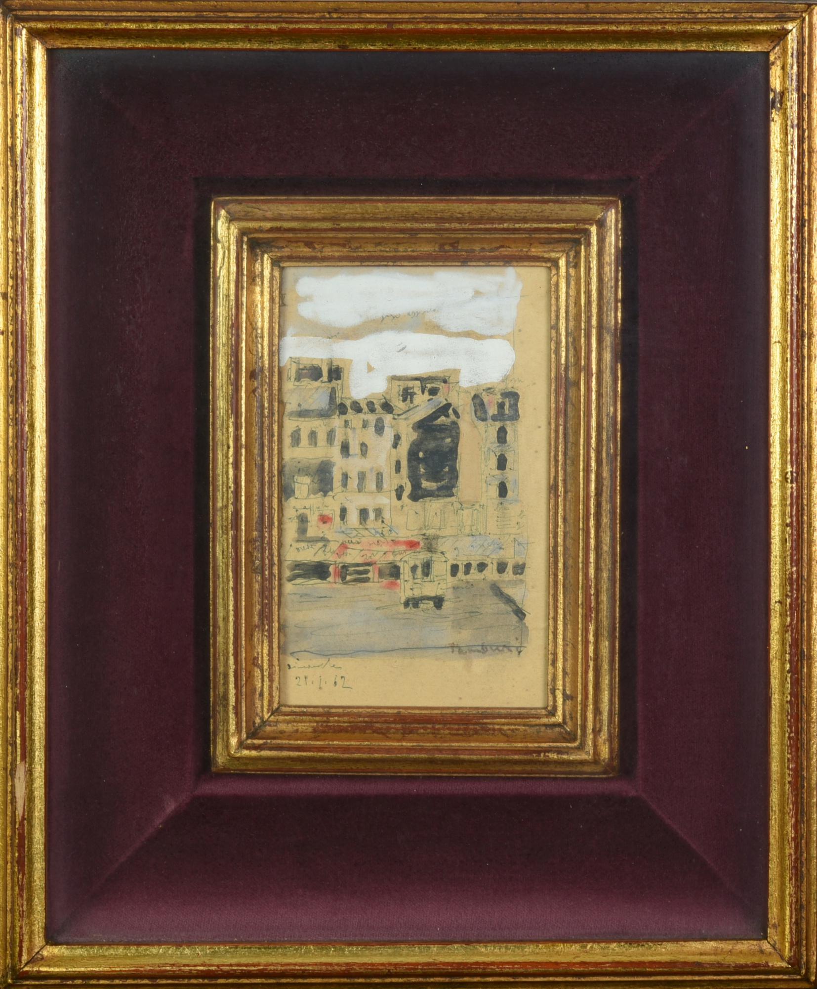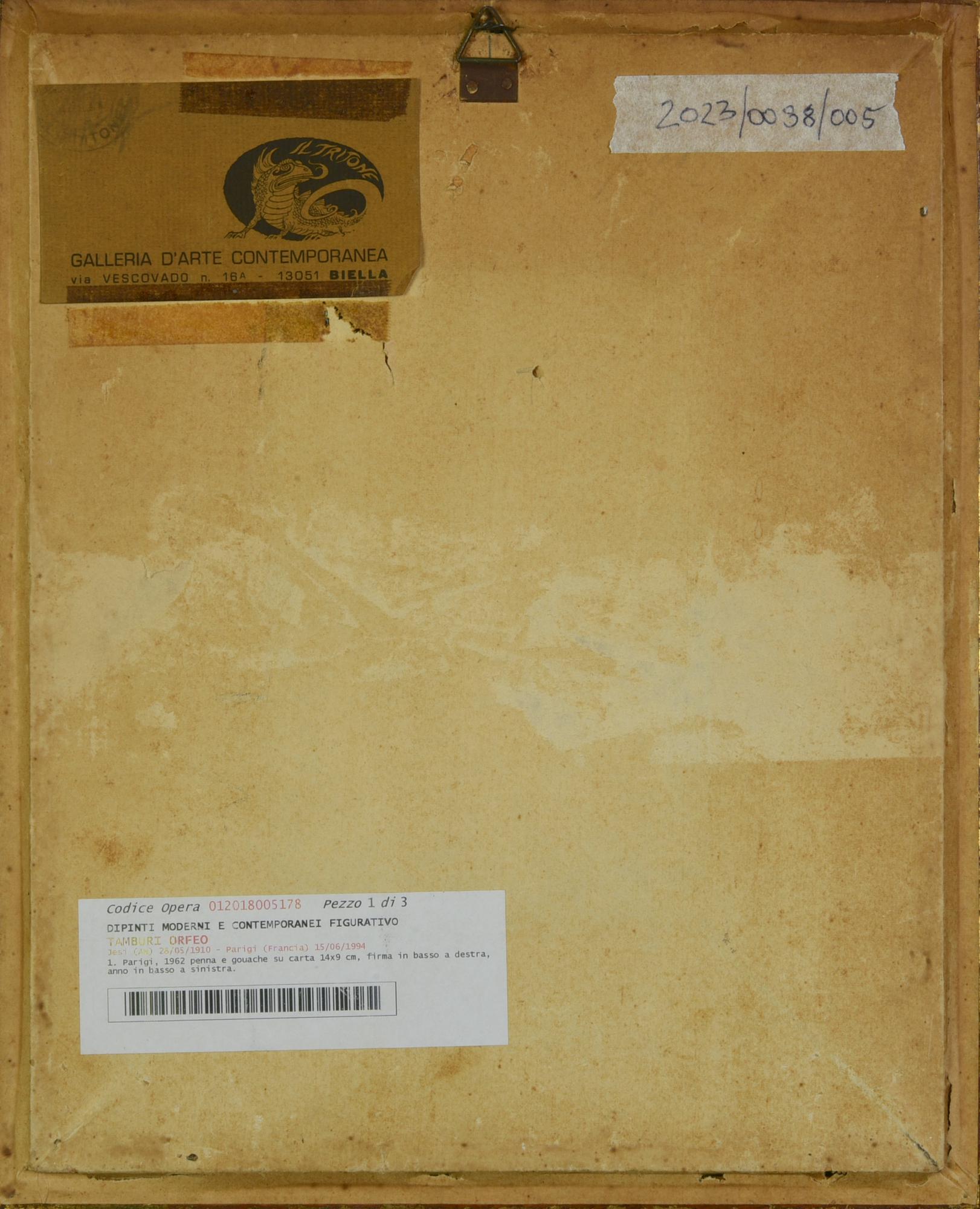 Orfeo Tamburi (1910 - 1994) CASE DI PARIGI, 1962 tecnica mista su carta, cm...