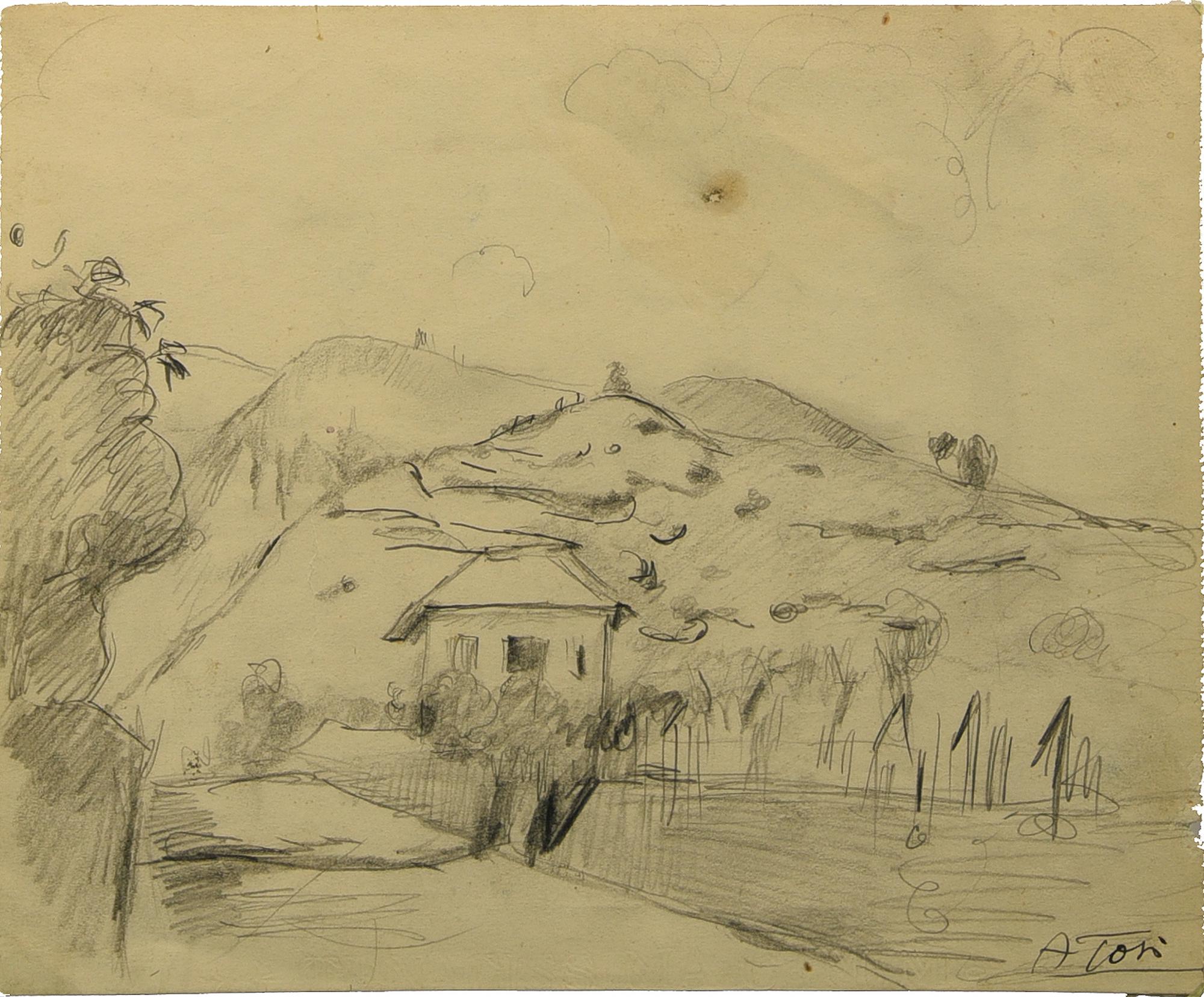 Arturo Tosi (1871 - 1956) PAESAGGIO matita su carta, cm 20,5x25 firma