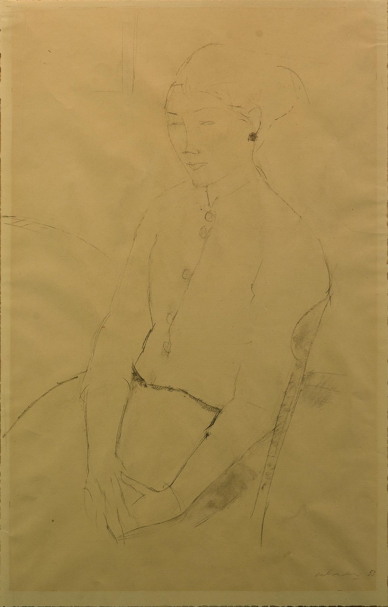 Aldo Salvadori RITRATTO FEMMINILE, 1953 matita su carta, cm 53x33 firma e...