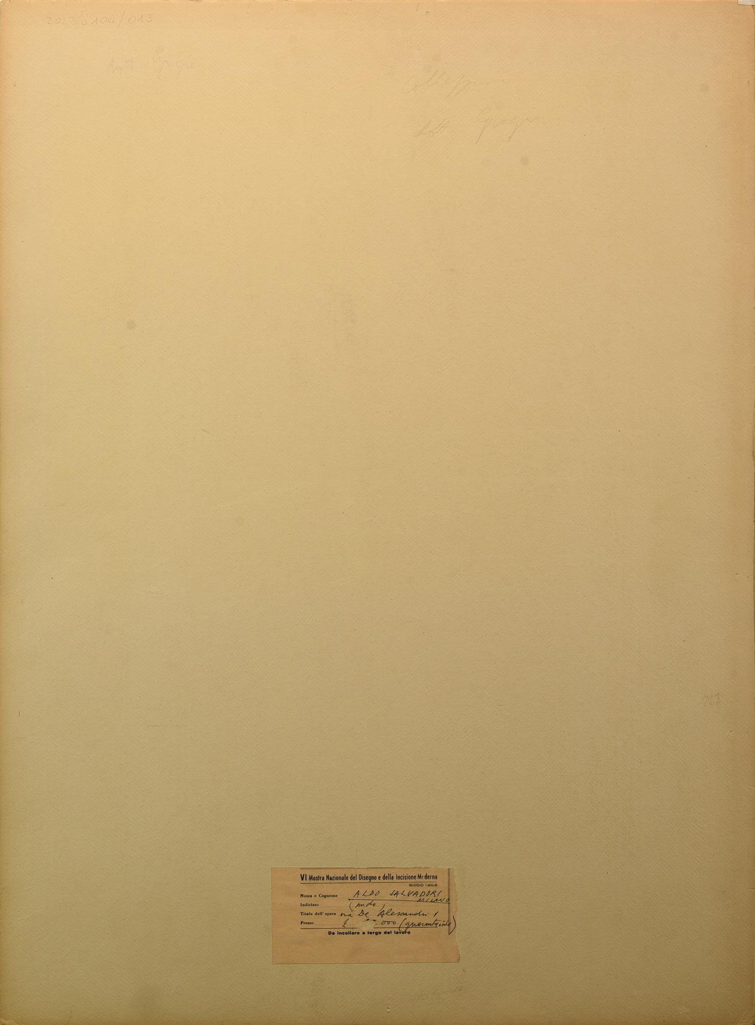 sul retro del supporto: etichetta della VI Mostra Nazionale del Disegno e della Incisione Moderna, Reggio Emilia