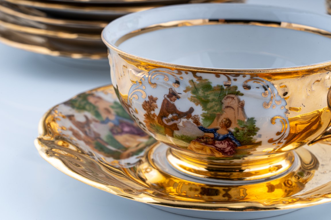 Servito da tè in porcellana a foglia d'oro, Bavaria