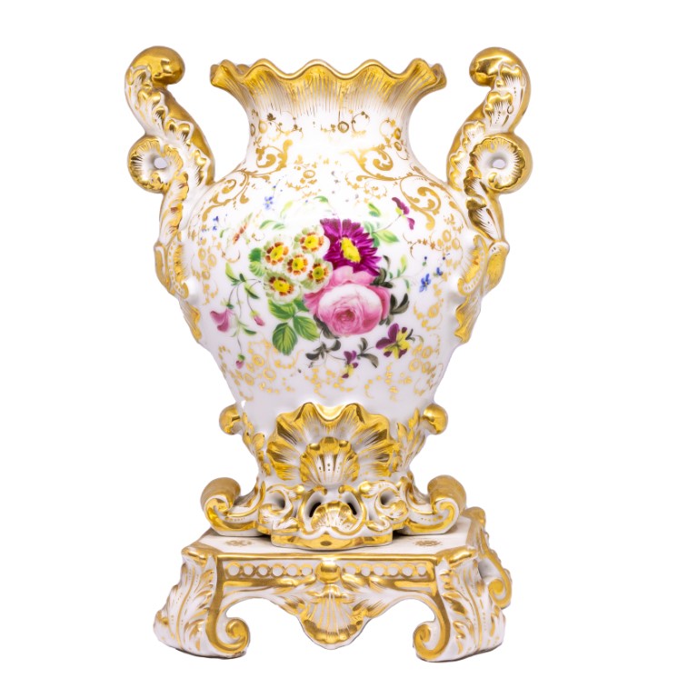 dipinti a composizioni floreali e dorati, su base quadrangolare con piedini a voluta
