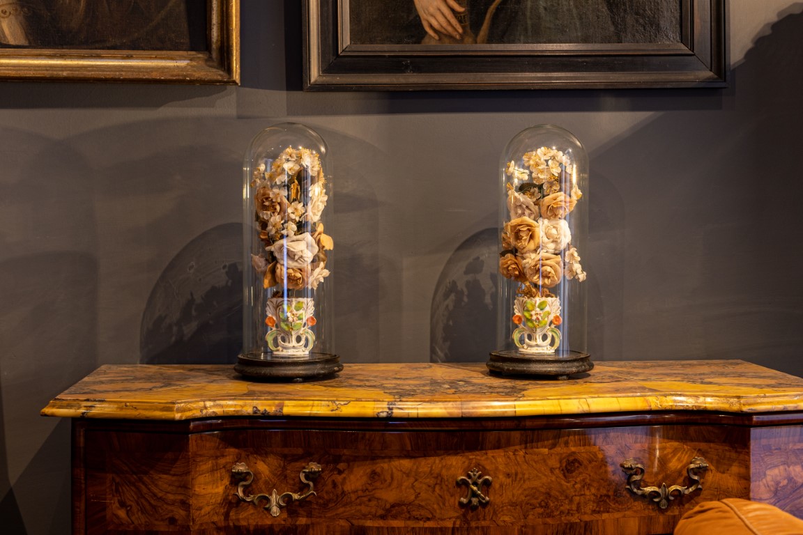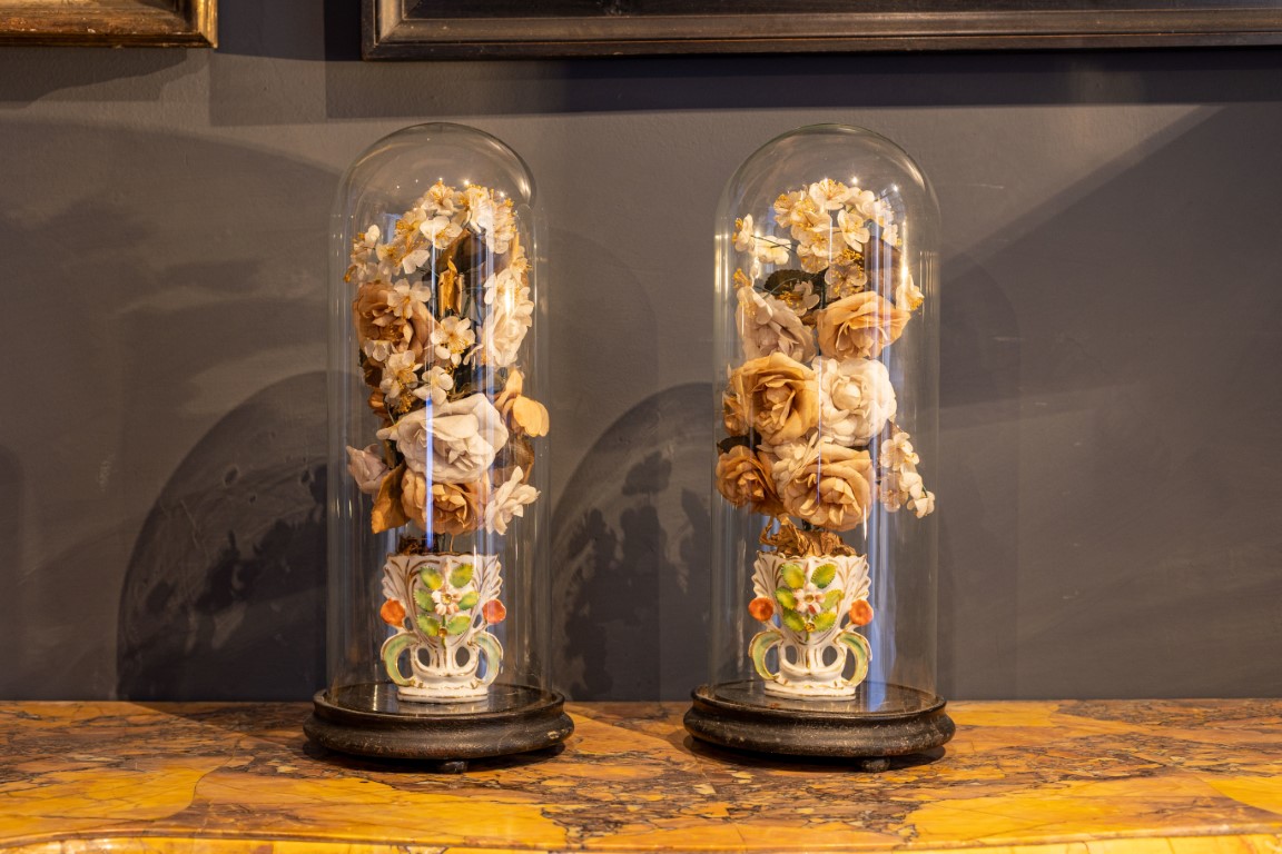 realizzate con vasetti Luigi Filippo dipinti a motivi floreali