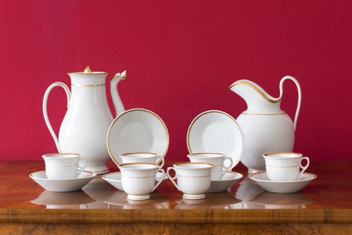 periodo Impero, composto da 6 tazze con piattino, 1 caffettiera e 1 lattiera