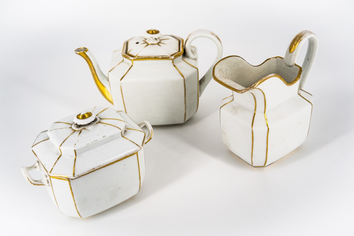 lumeggiato in oro, composto da 1 teiera, 1 lattiera e 1 zuccheriera