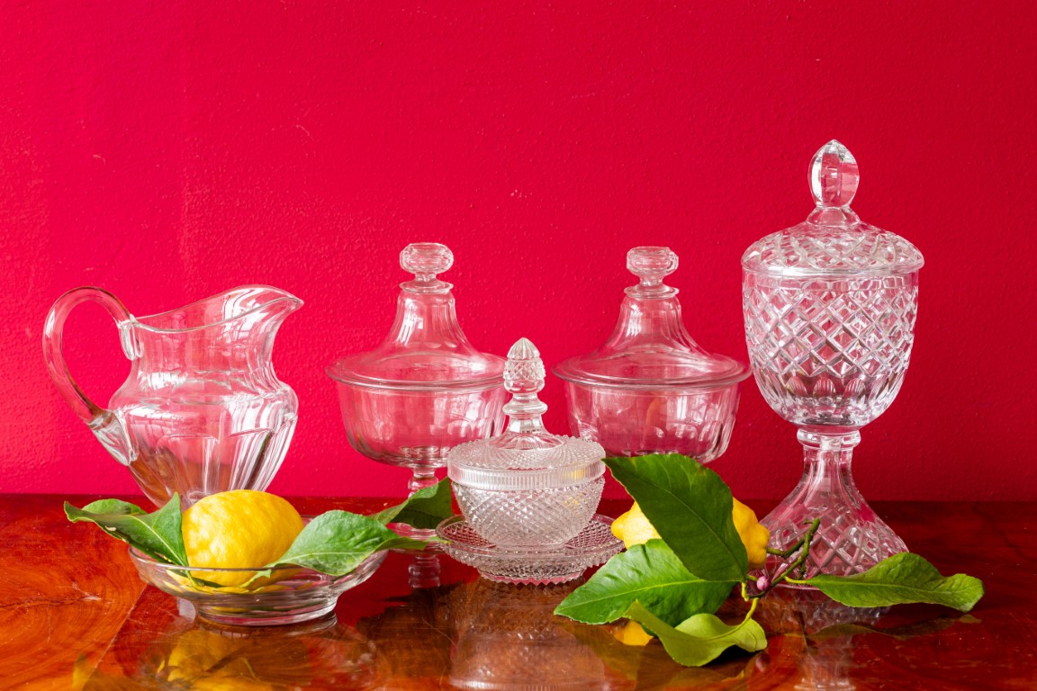 tra cui una coppia di porta bonbon, una brocca, un porta bonbon ad alzata