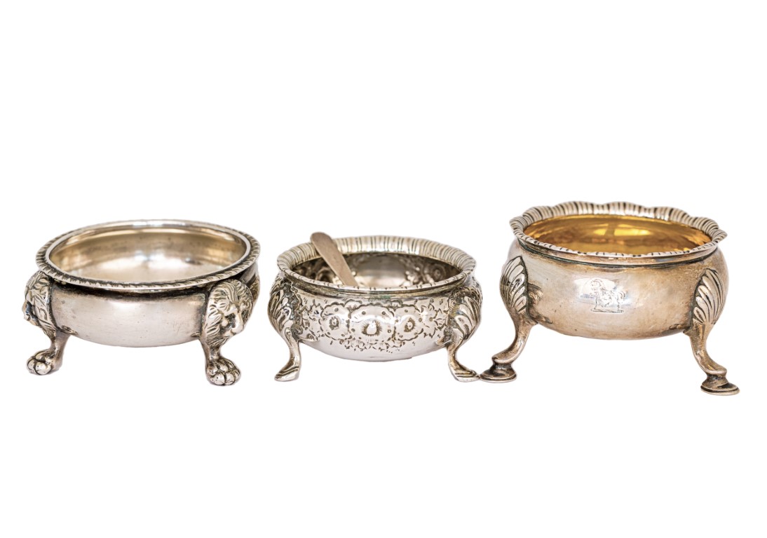 Tre saliere in argento ed un cucchiaino