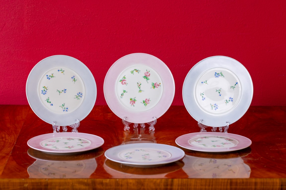 Lotto di sei piattini in porcellana