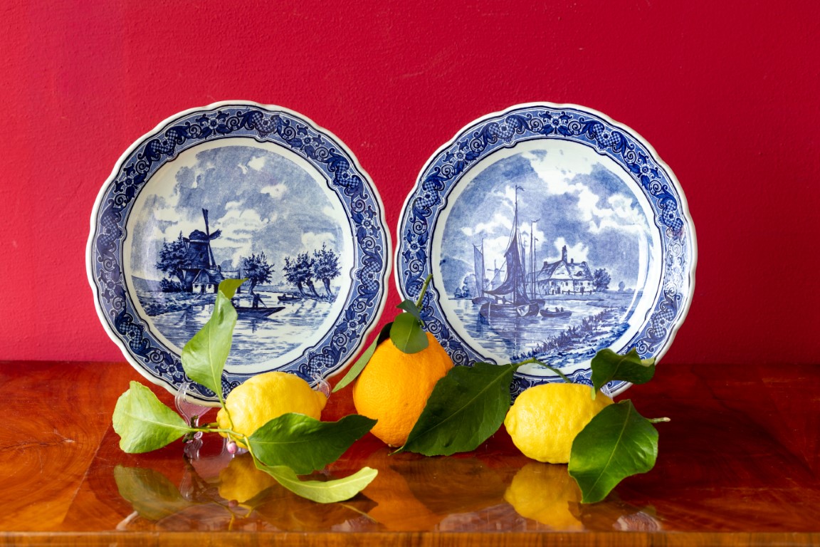 Lot 138 | Coppia di piatti in ceramica bianco-blu, Royal Sphinx Maastricht Delfts