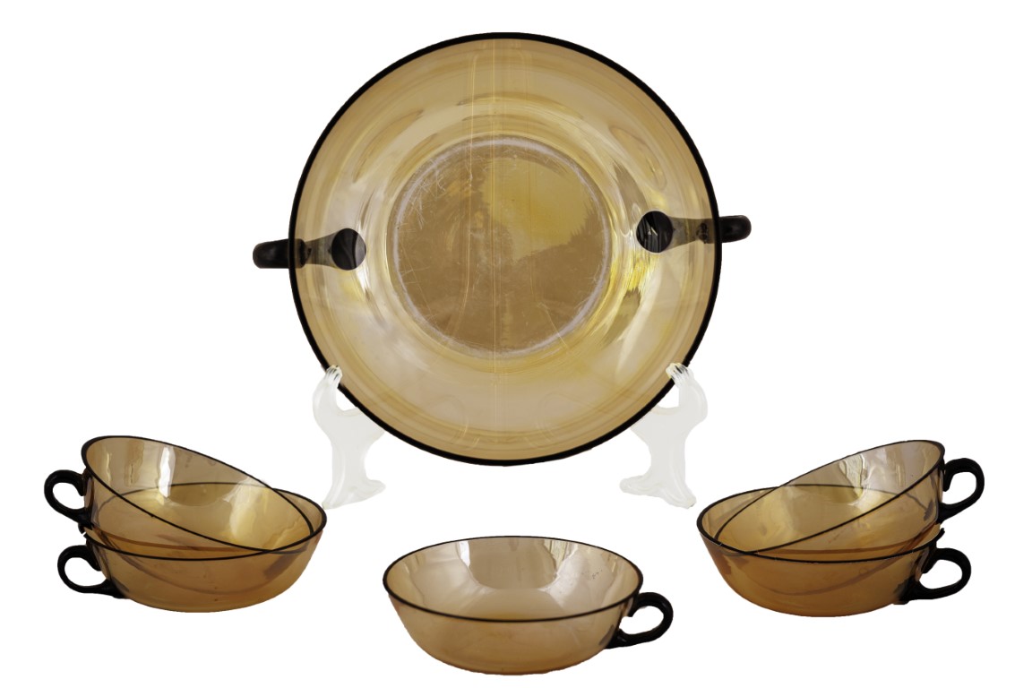 con manici in vetro nero, composto da 1 grande coppa a doppio manico e 5 coppette