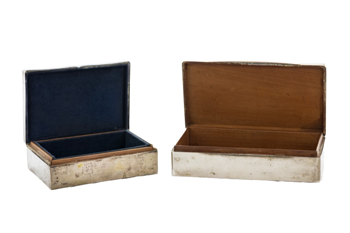 una cesellata a motivi fitomorfi sul coperchio, l'altra a motivi geometrici