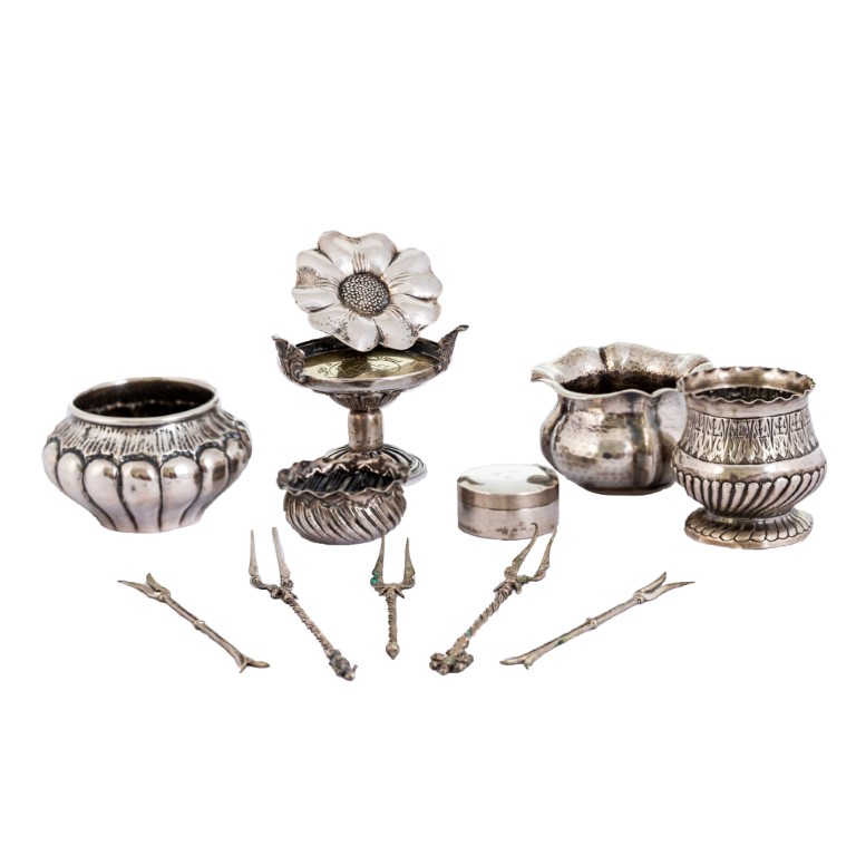 Lotto di curiosità in argento sbalzato