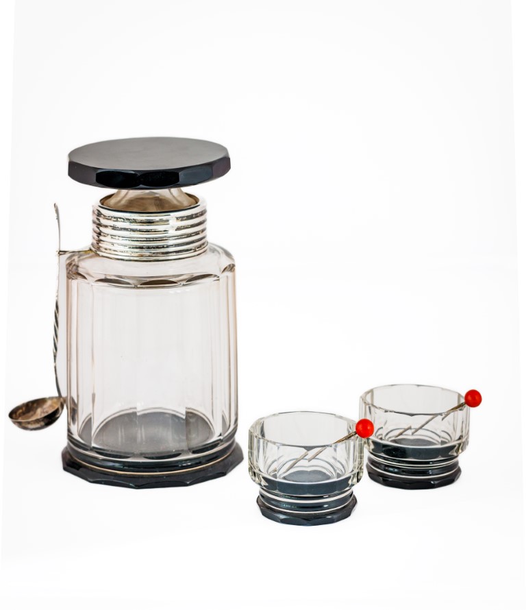 Servito da ciliegie sotto spirito in vetro molato e argento