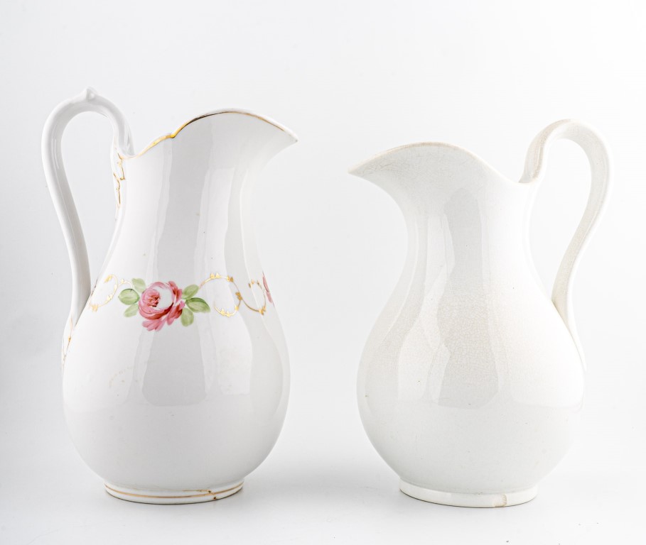 una in porcellana Ginori decorata a fiori, l'altra in ceramica Richard
