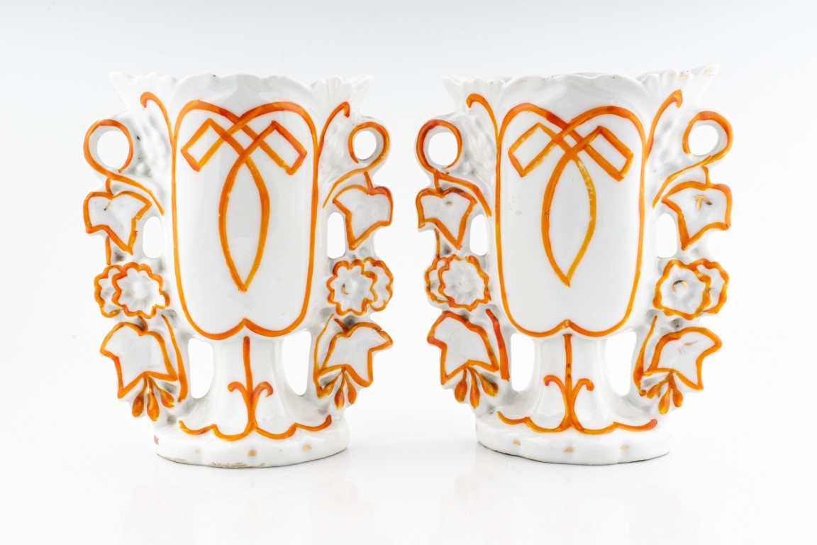 Coppia di vasi Luigi Filippo in porcellana bianca e arancio