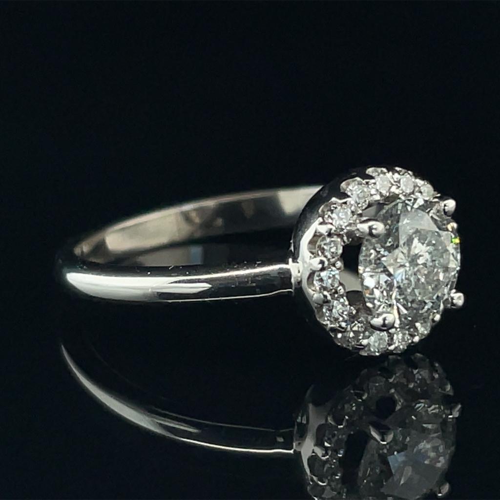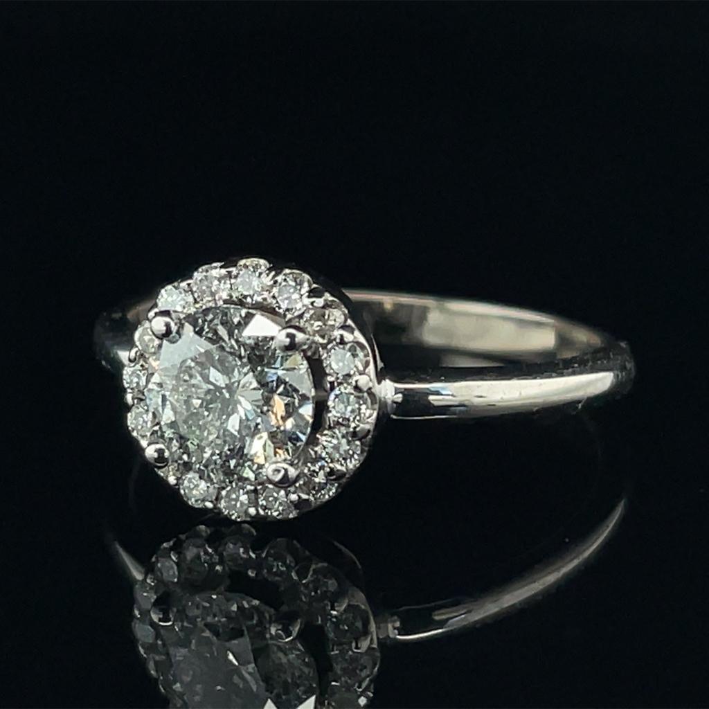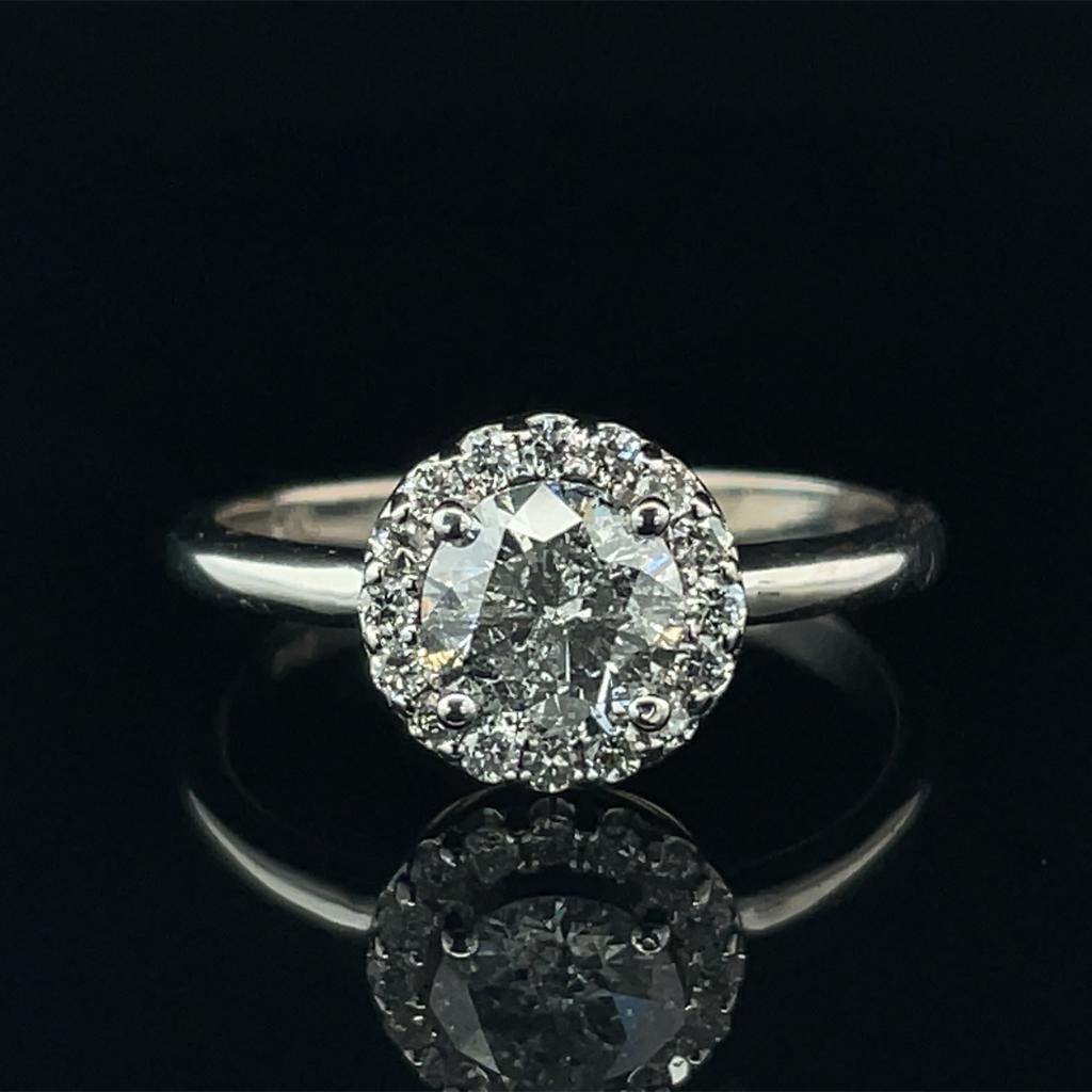 ANELLO IN ORO BIANCO 14K 2.58 GR CON DIAMANTE 0.83 CT E-F/I1 + 0.16 CT...