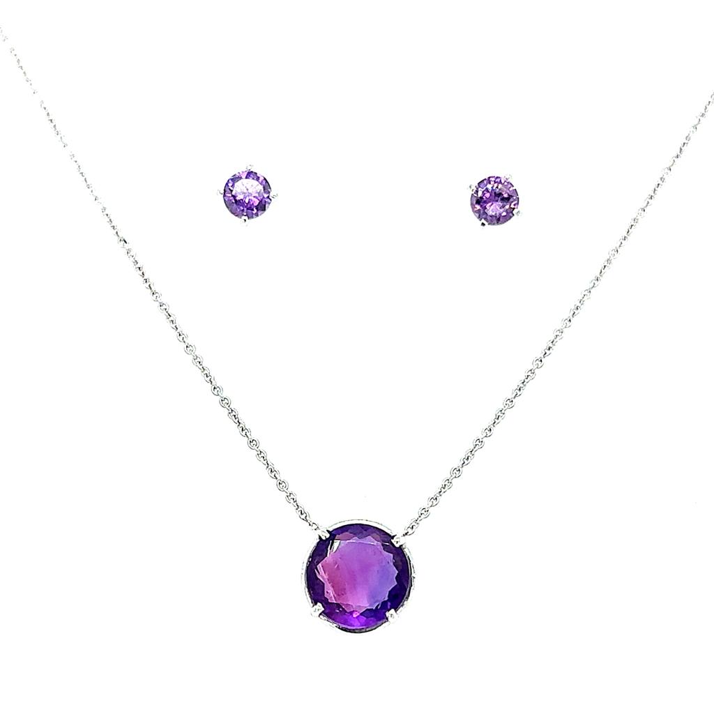 Lot 150 | GIROCOLLO + ANELLO IN ORO BIANCO 14K 1.19 GR CON AMETISTA 1.59 CT ORECCHINI...