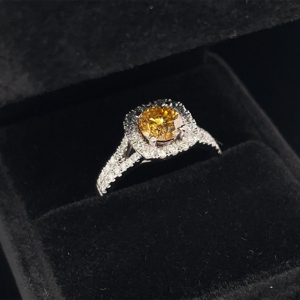ANELLO IN ORO BIANCO 14K 5.03 GR CON DIAMANTE FANCY GIALLO ARANCIO INTENSO 1.14 CT + BRILLANTI PER 0.32 CT CERTIFICATO GIA - RNG20605