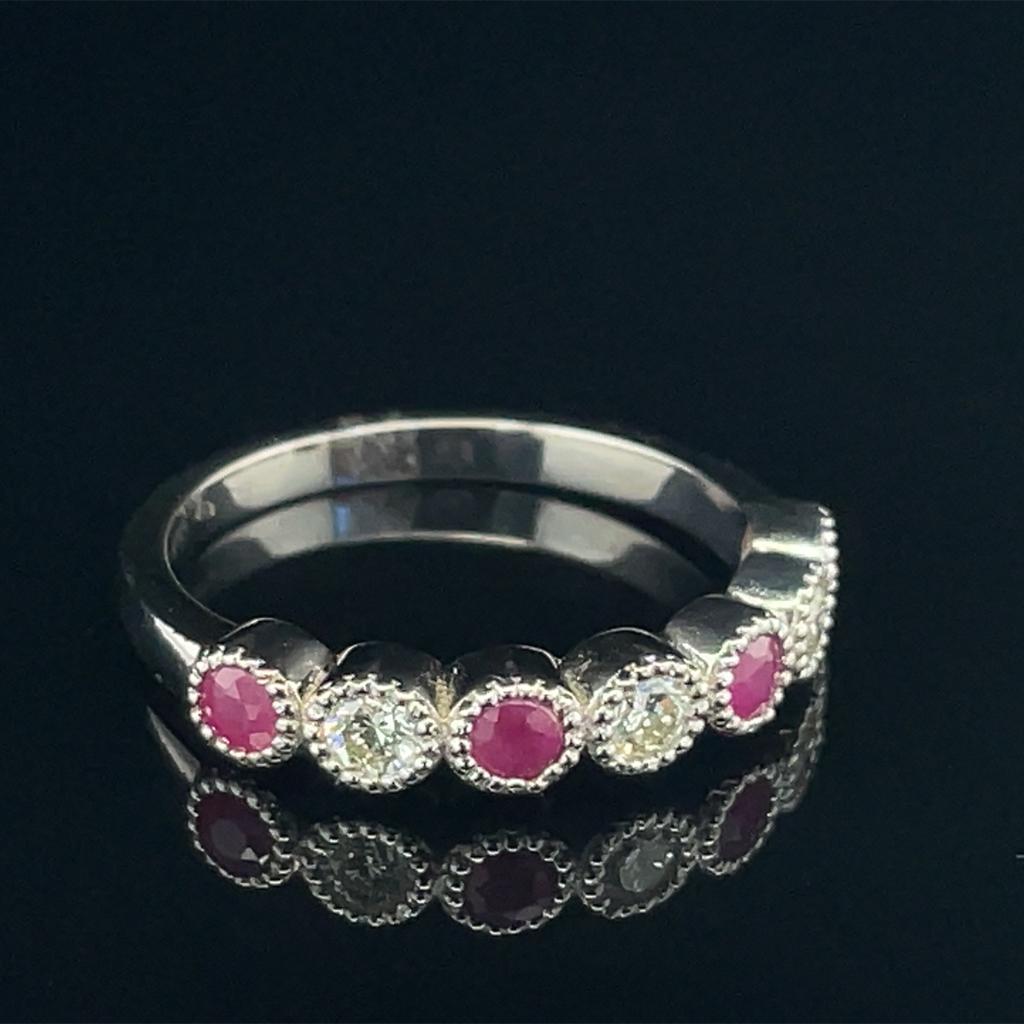 ANELLO IN ORO BIANCO 14K 2.64 GR CON RUBINI 0.44 CT TOTALI + BRILLANTI PER 0.23 CT TOTALI COLORE F-G PUREZZA VS TAGLIA 6.5 CERTIFICATO ID - A525