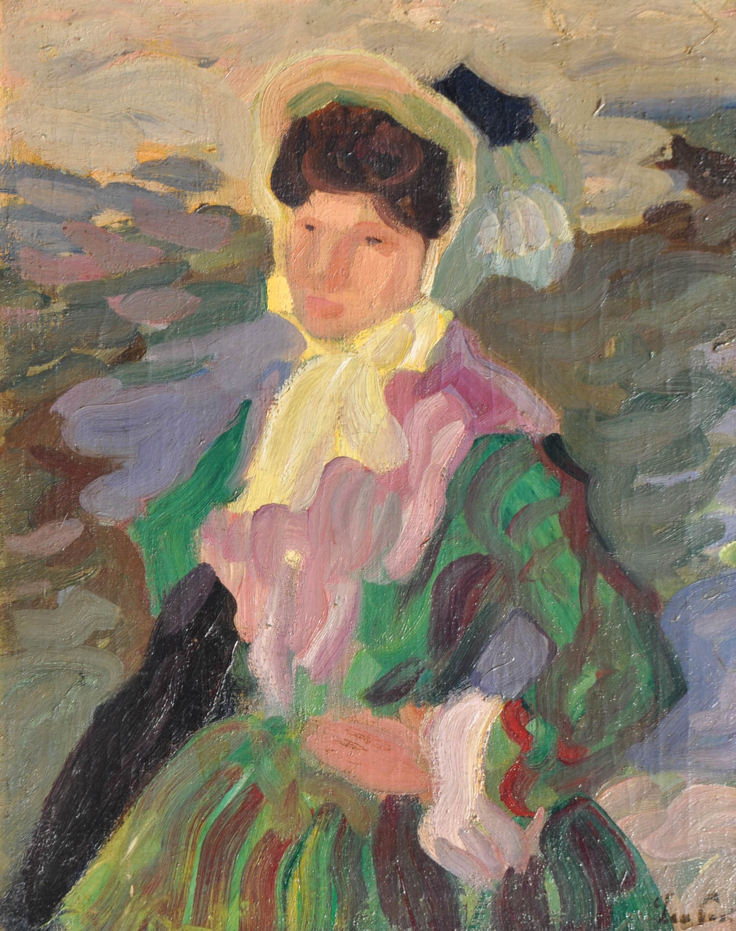 Leo Putz (Meran/Merano 1869 - 1940) Donna nel parco, 1903;Olio su tela, 63,5 x 51 cm, in cornice