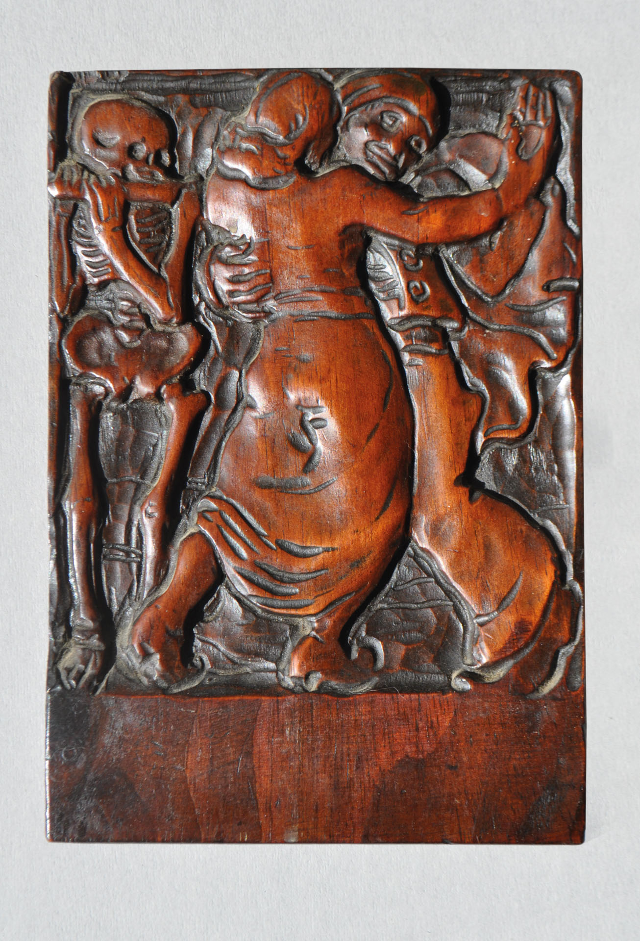 Ignaz Gabloner (Bozen/Bolzano 1887 - 1964) Coppia danzante con la morte 1920/25 ca.;Rilievo in legno, 22,5 x 15,5 cm
