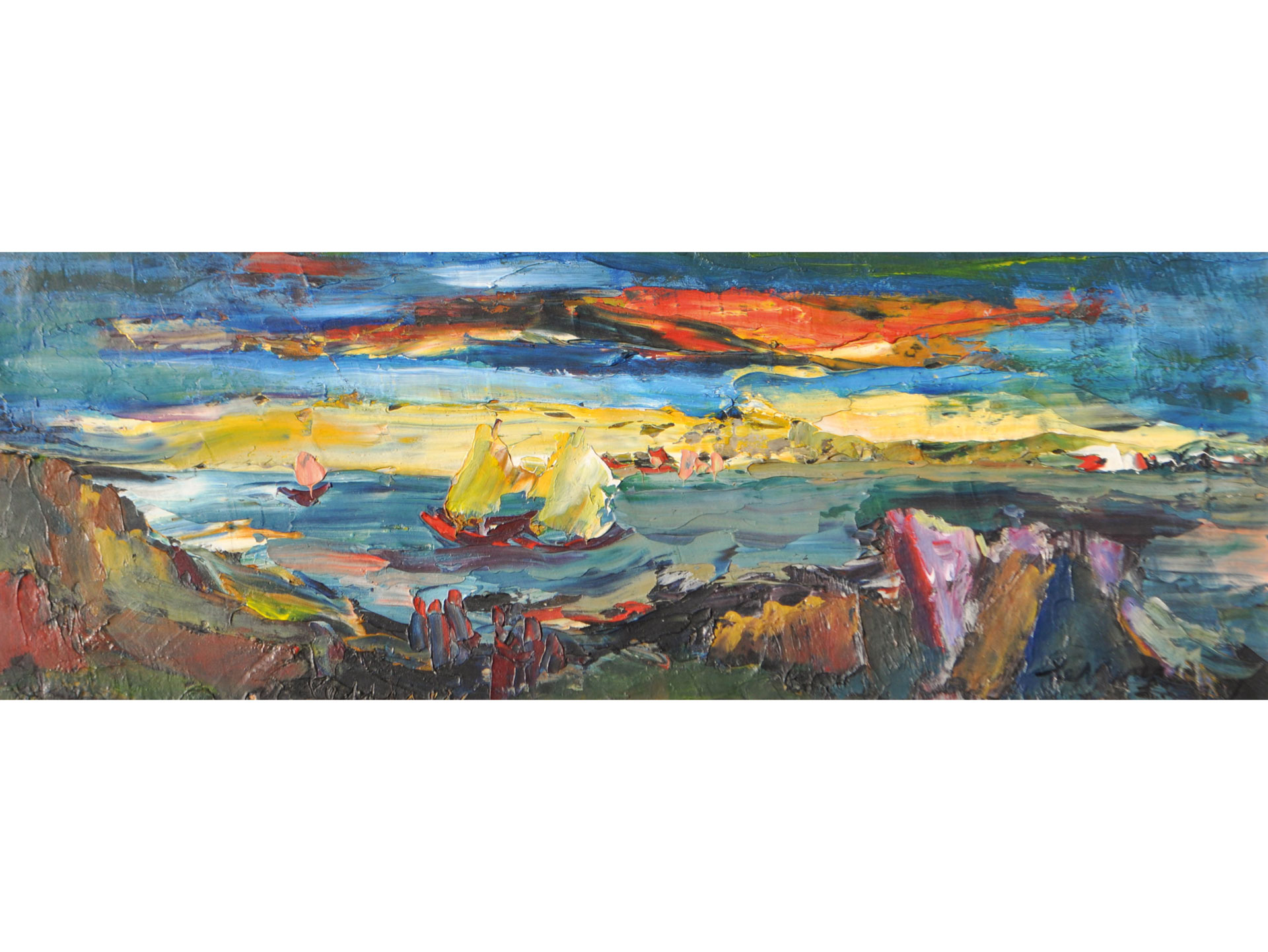 Franz Lettner (Salzburg/Salisburgo 1909 - Innsbruck 1998) Nel mediterraneo, 1974;Olio su lastra, 20,5 x 58 cm, in cornice