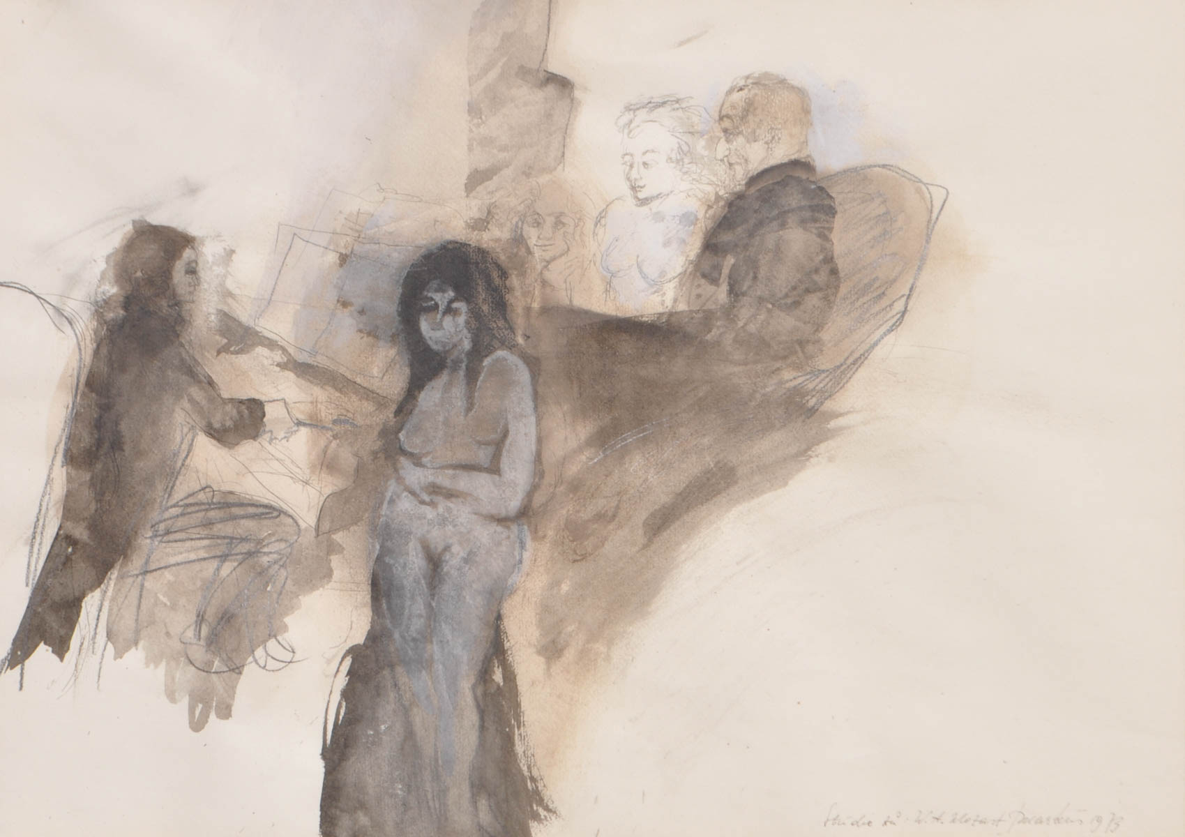 Markus Vallazza (St. Ulrich in Gröden/Ortisei 1936 - Bozen/Bolzano 2019) Studio per W. A. Mozart, 1973;Tecnica mista su carta, 34 x 48 cm, in cornice