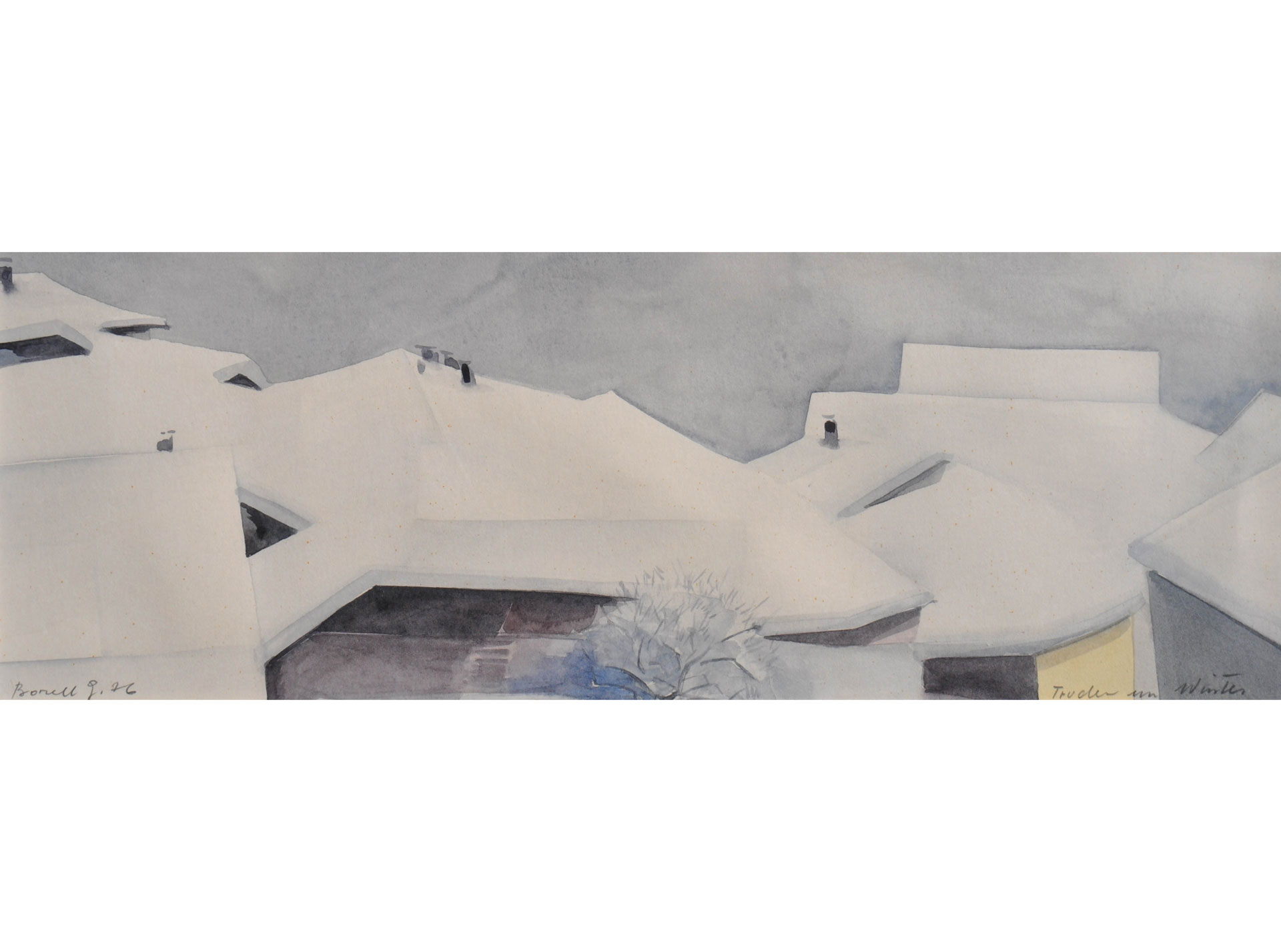 Gotthard Bonell (Truden/Trodena 1953) Trodena in inverno, 1976;Acquerello, 13,7 x 39,5 cm, in cornice